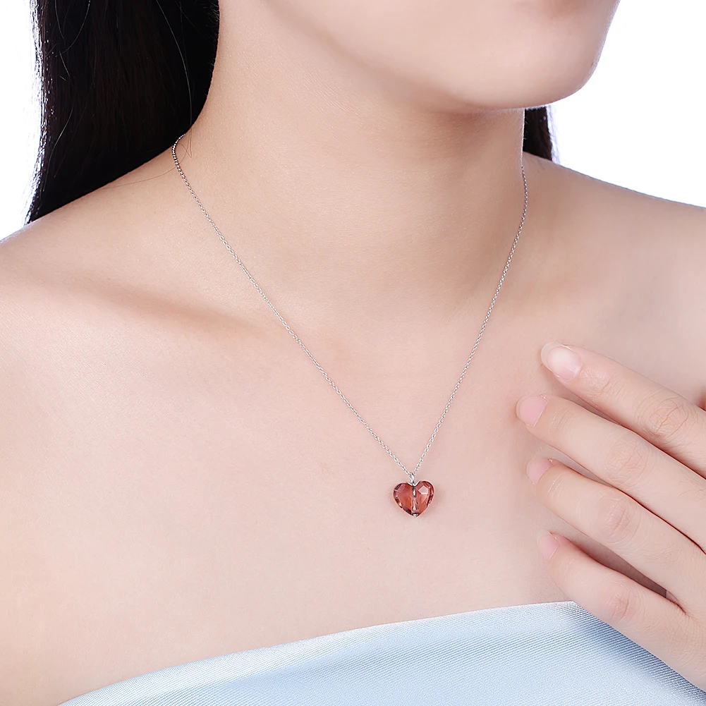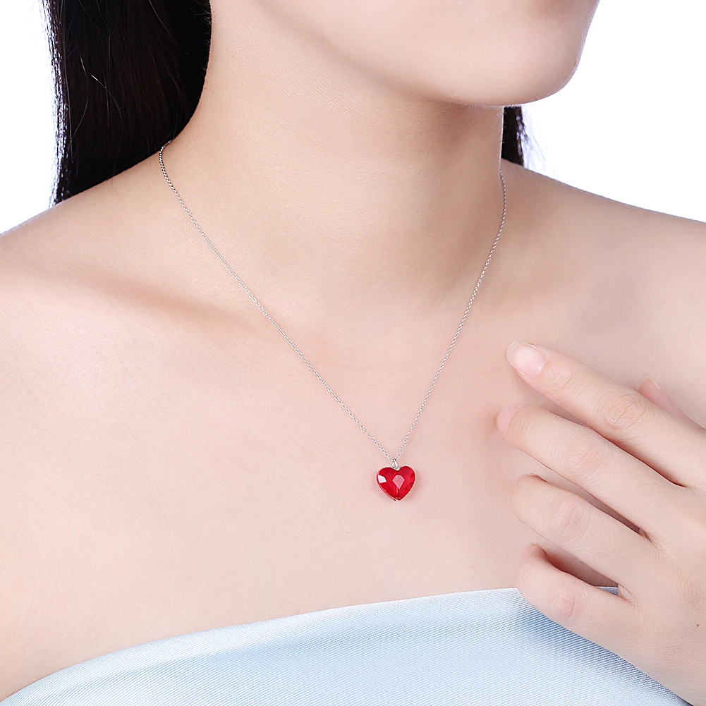 Подвеска с красным сердцем и кристаллами LEKANI от Swarovski, ожерелье из стерлингового серебра 925 пробы, очаровательное колье, подарки, женские винтажные ювелирные изделия