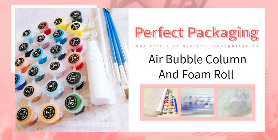 Упаковка включает:1 * Холст, 3 * кисть, 1 * Инструкция, 1 * краски, 2 * крючок без следов, 2 винта