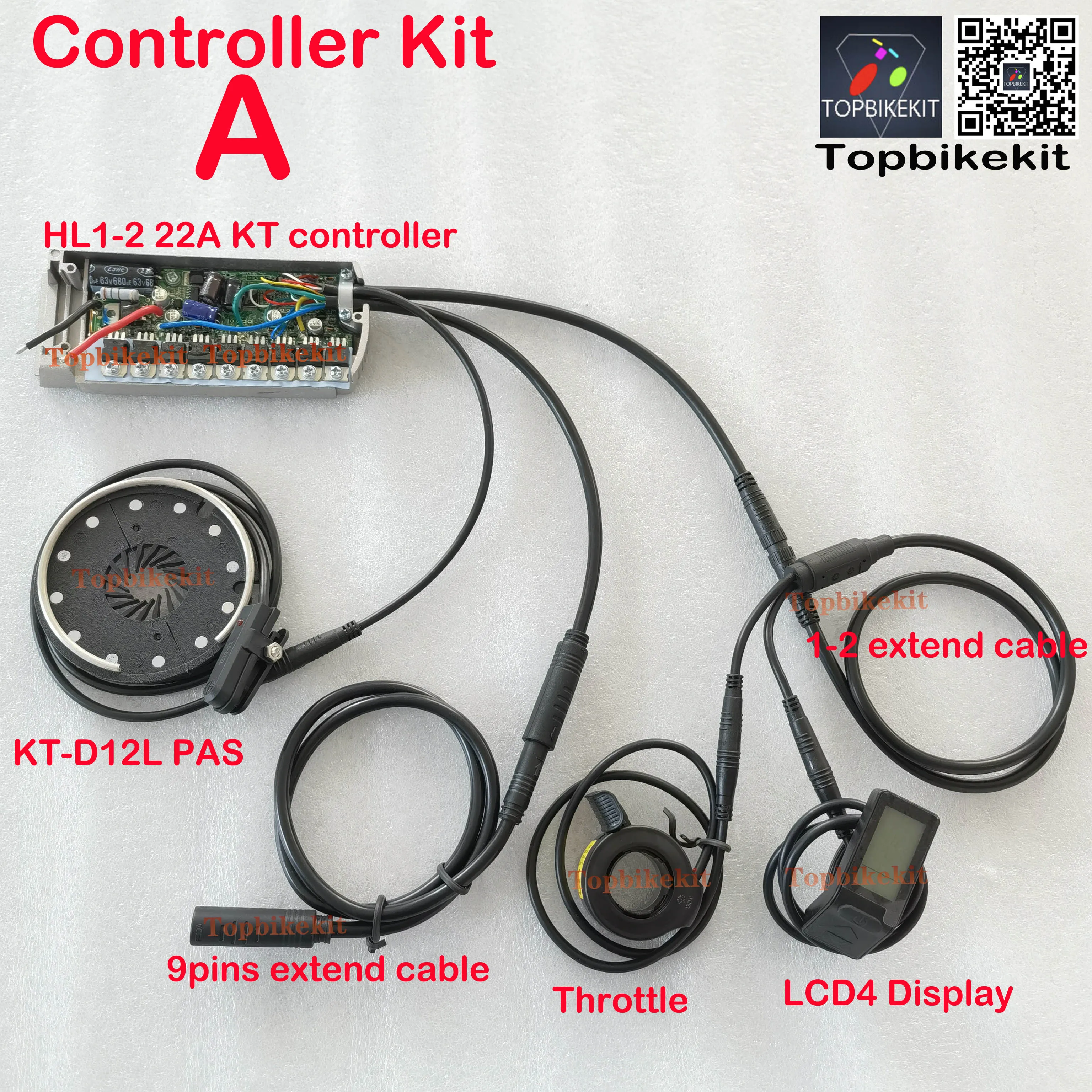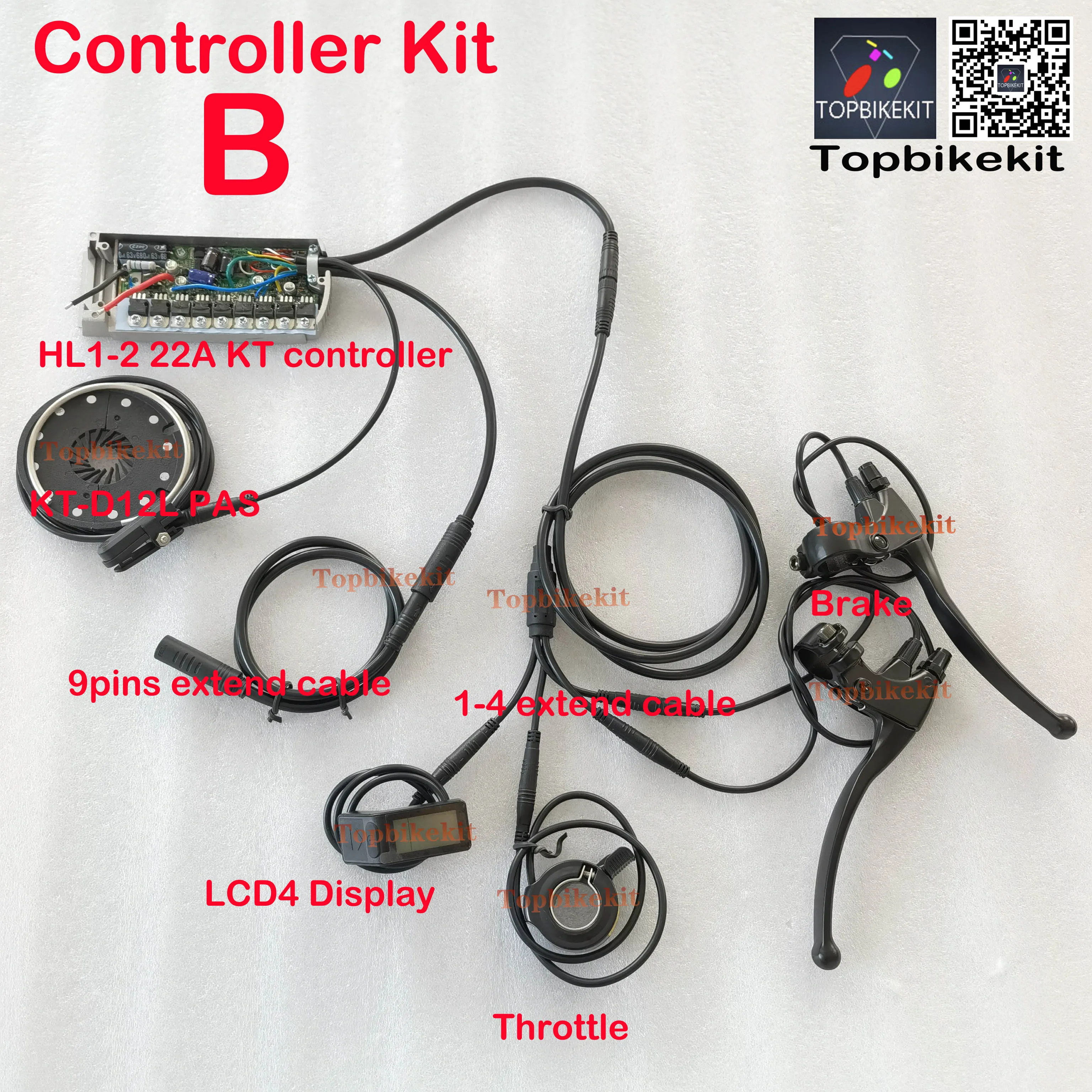 Комплект B: HL1 15A контроллер + KT LCD4 дисплей + дроссельная заслонка +Тормоз+ KT D12L PAS + 1-4 Удлинительный кабель + 9 контактов Удлинительный кабель двигателя (1 метр)