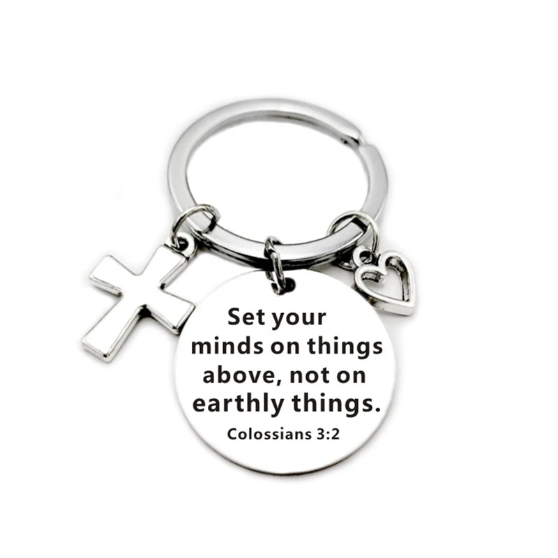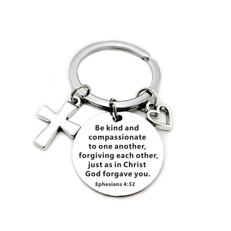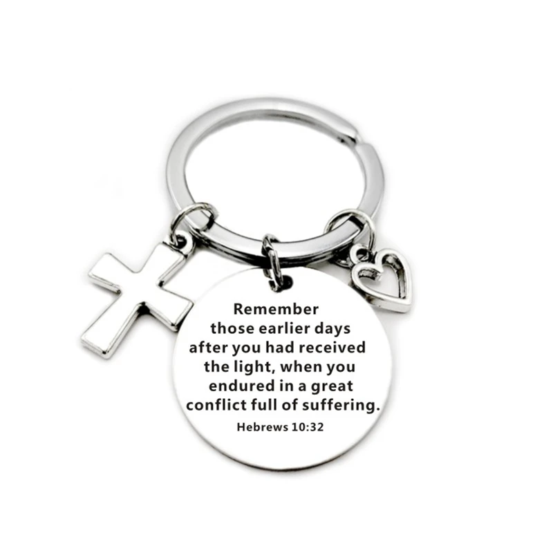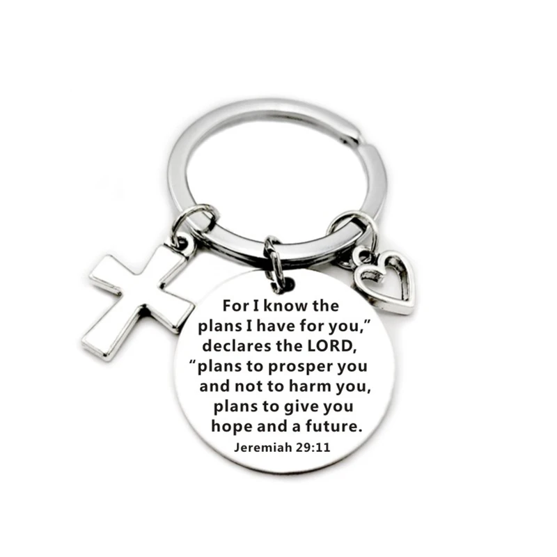 Христианские библейские Брелоки для ключей крест сердце амулеты стихи Писания из нержавеющей стали кулон цепочка для ключей религиозные украшения