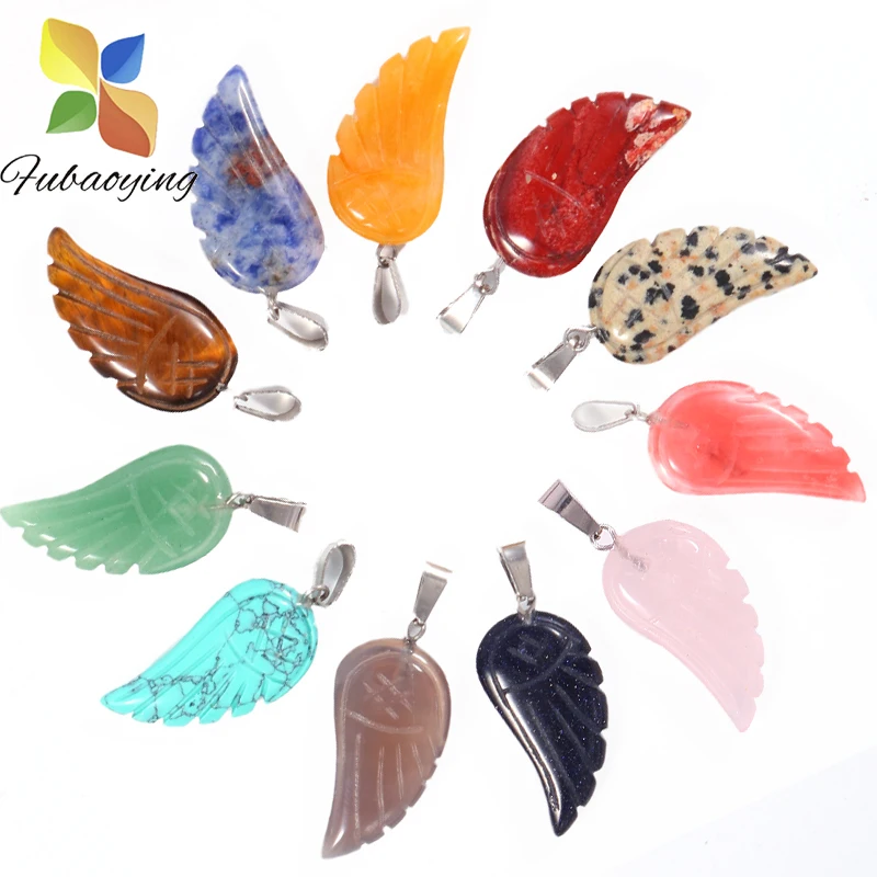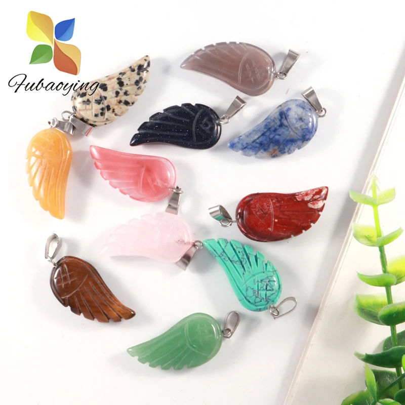 10 шт./лот Подвески Крылья Ангела Рейки Исцеление кулон натуральный камень кварцевый кристалл смешанный ожерелье модные бусы для изготовления ювелирных изделий