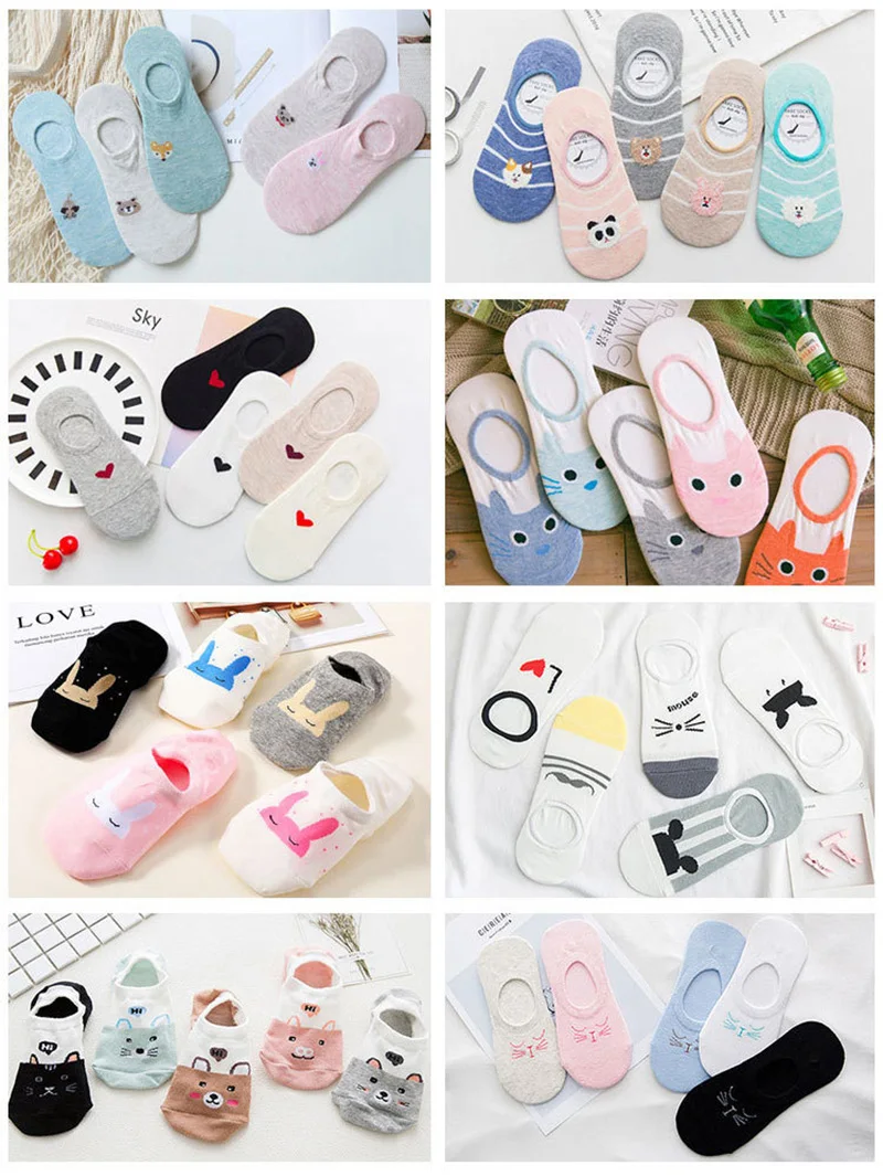 Название продукта: невидимые носки с героями мультфильмов Подходящий сезон: весна, лето, осень Материал: хлопок, полиэстер, спандекс Толщина: тонкая Функция: пот, дышащий, нескользящий Размер: 35-40 евро Количество: 5 пар/компл. Упаковка: OPP мешок