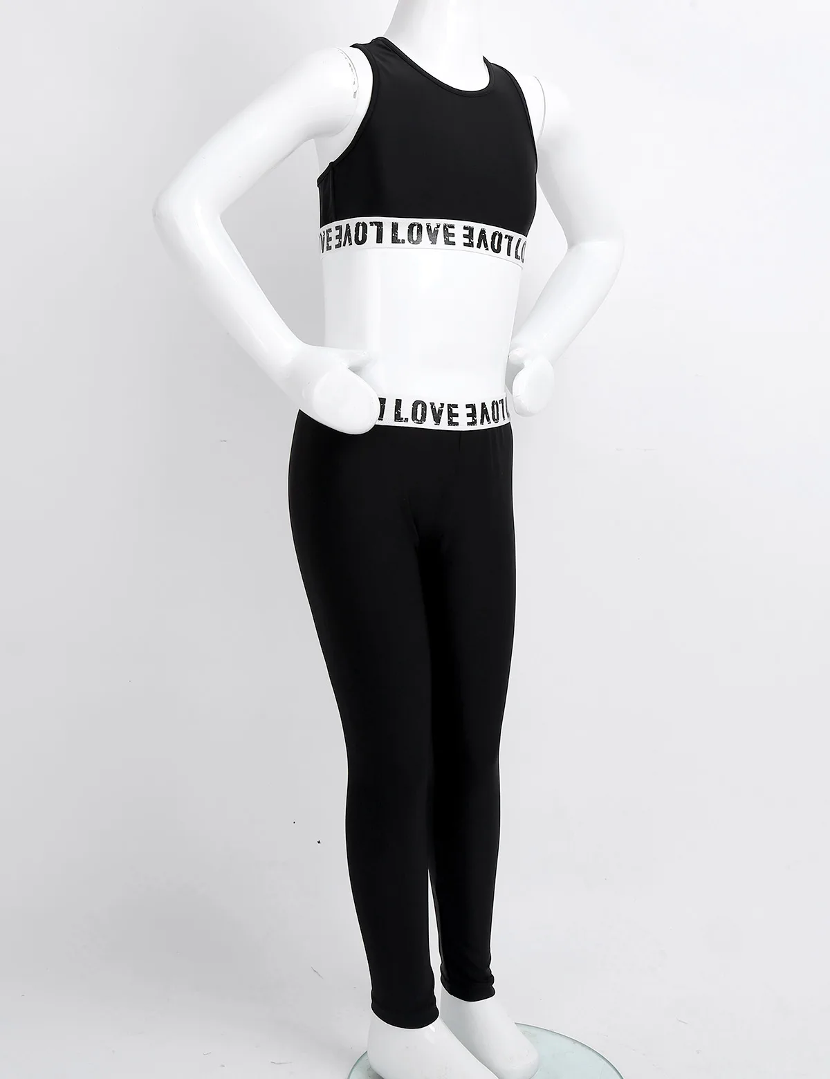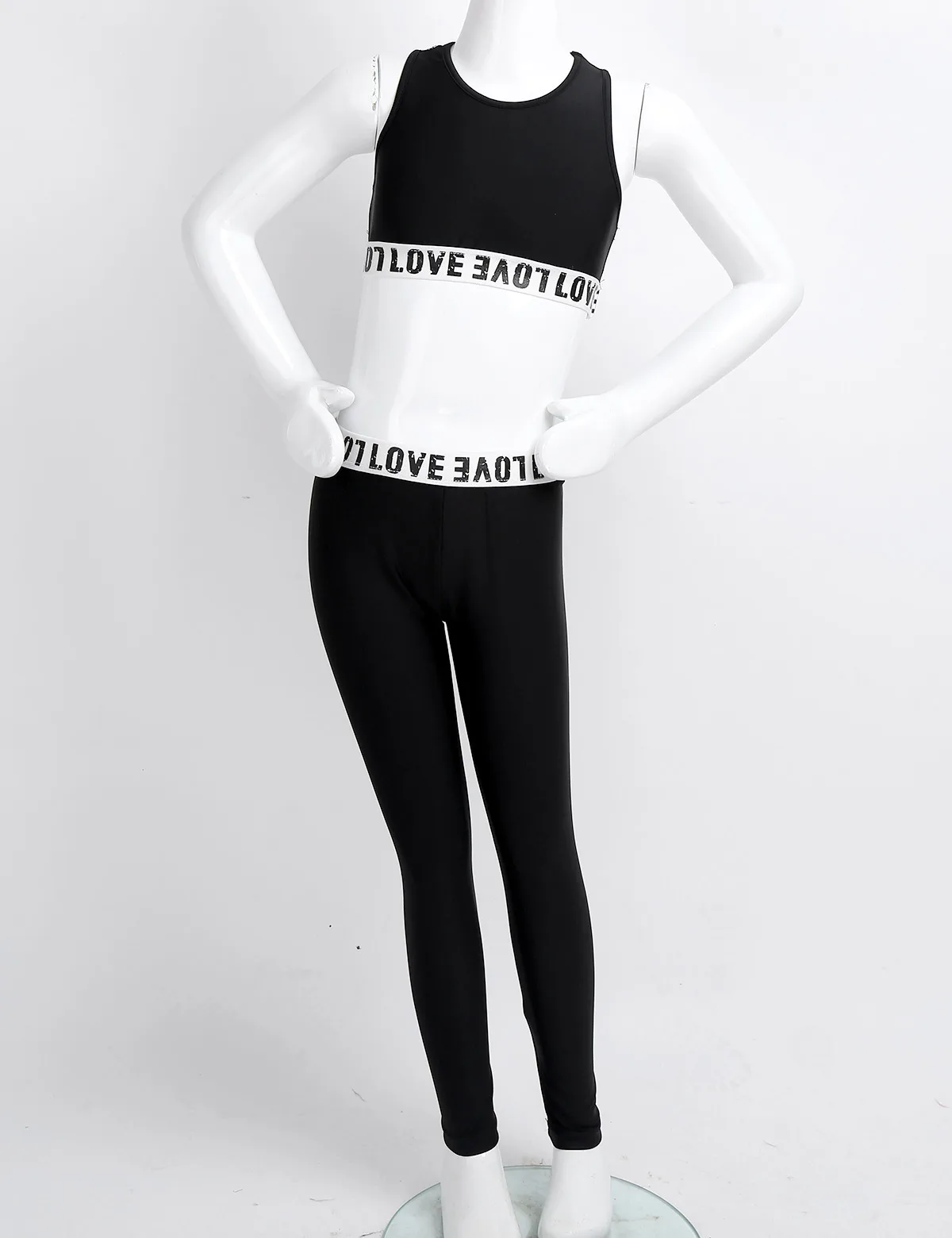 Леггинсы полной длины с буквенным принтом и эластичным поясом. Модный и стильный комплект одежды для вашей девочки.