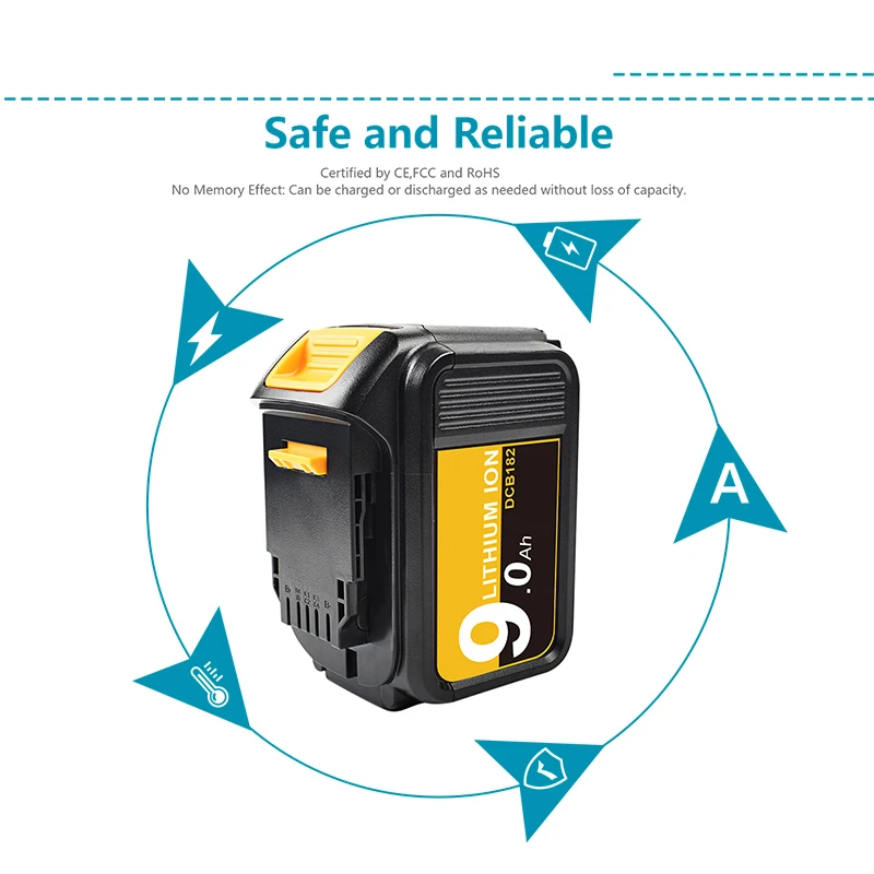 Эта батарея предназначена дляДайсонЛитий-ионный аккумулятор Dewalt DCB182DewaltЛитий-ионный аккумулятор 18/20 в, это своего рода литий-ионный аккумулятор, его можно носить с собой куда угодно в любое время, удобный в использовании. И он не имеет эффекта памяти. Можно заряжать или разряжать по мере необходимости без потери емкости. Функции такие же, как и у оригинальной продукции