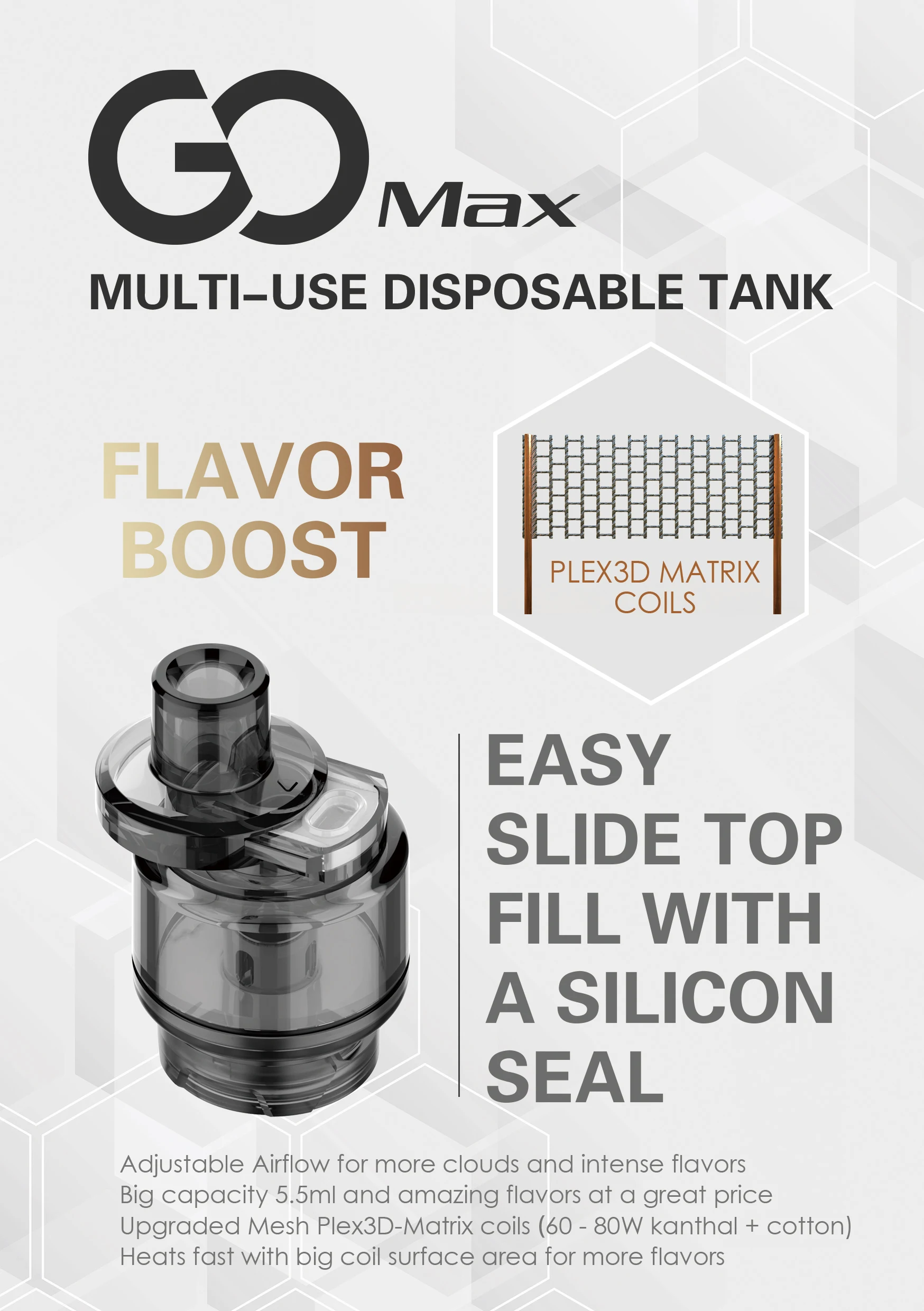 Параметры: 29 мм Диаметр 5,5 мл Ёмкость бака Улучшенная конструкция пластикового бака PCTG Скользящая верхняя заполняющая система 0,16 Ом сетка Plex-3D матрица катушки Рифленая и зубчатая сетчатая катушка для лучшего влагоотводящего и облачного производства Двойное щелевое интегрированное регулируемое кольцо управления потоком воздуха Резьбовой 510 соединение