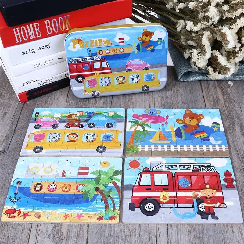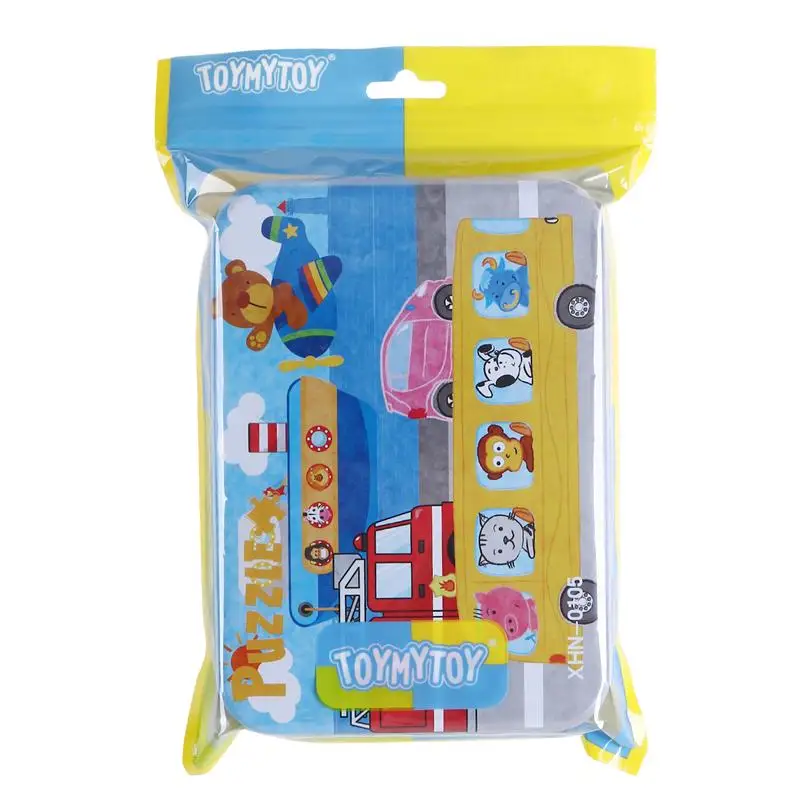 1 x TOYMYTOY 4-In-1 Education And Learning Intelligence Toys Bus Ship Fire Truck Vehicles Animals Wooden Puzzles Jigsaw For Toddlers Cognitive Development Preschool Recognition Toys Kids Gift