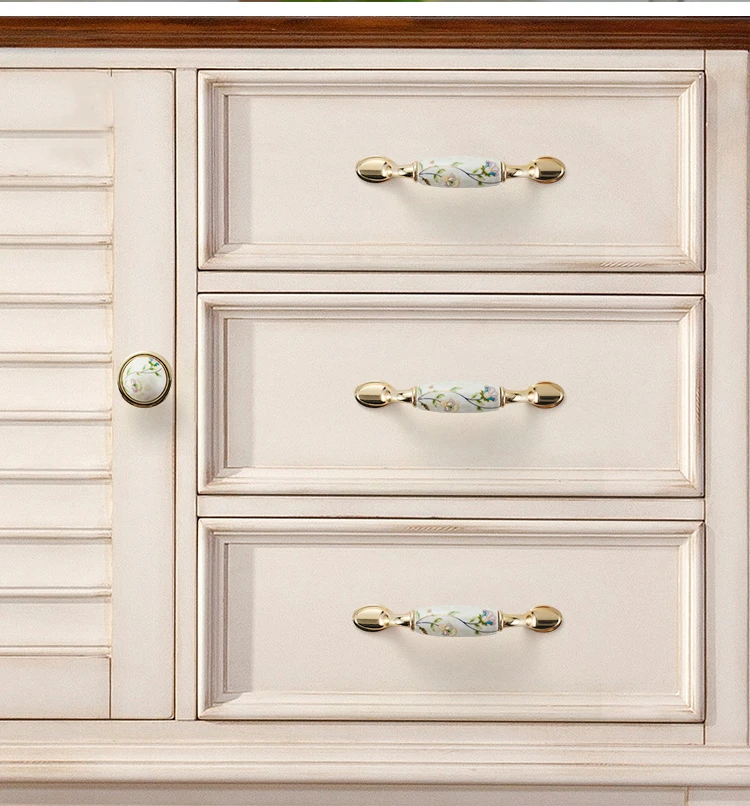 NAIERDI Gold White Creamic Gold Cabinet Handles Knobs Drawer Pulls Kitchen Door Handles Furniture Handle Cabinet Door HardwareUS $1.39 - 4.49