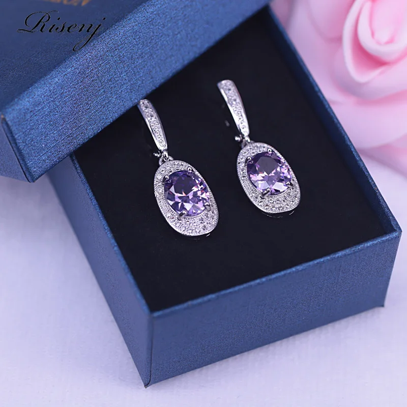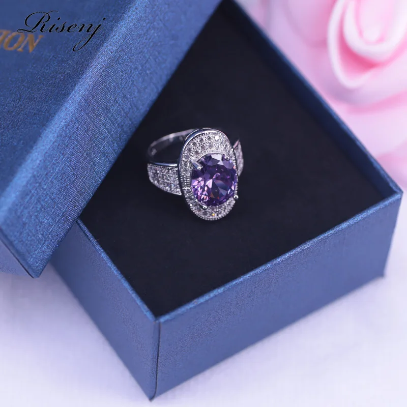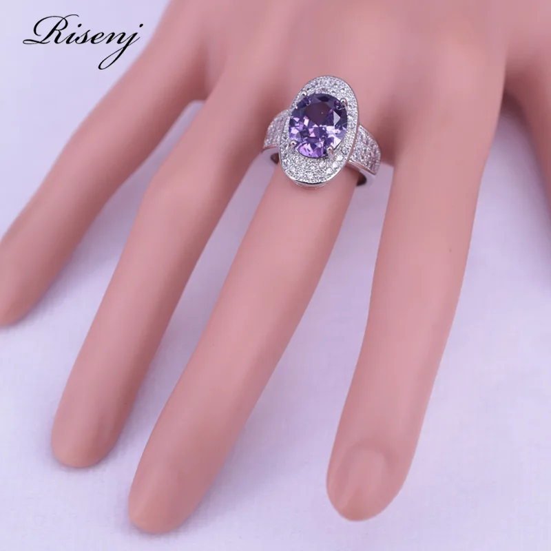 Подарок принцессы, большое овальное фиолетовое кольцо с кубическим цирконием, ювелирное изделие из стерлингового серебра 925 пробы для женщин, кольцо, серьги, ожерелье