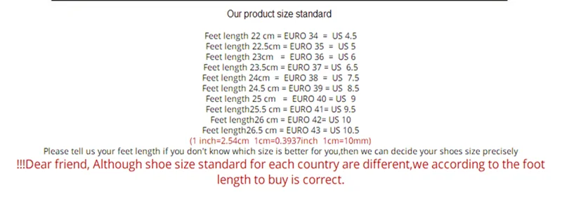 -Указанные в таблице размеров США размеры не соответствуют стандартным размерам США -Пожалуйста, выберите размер в соответствии с длиной Вашей стопы.