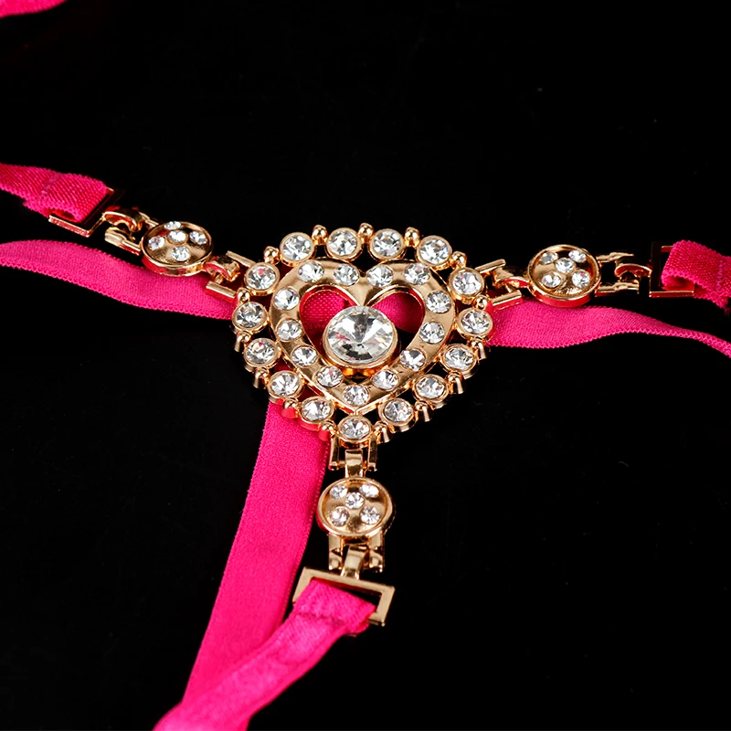 Heart Sequined Rhinestone Body Chains G-strings Ladies Low Waist Panties Sexy Erotic Lingerie Crystal Underwear Thong