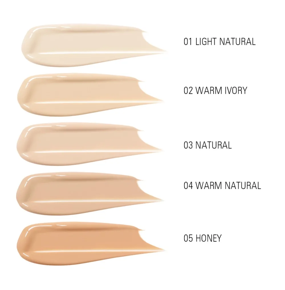 Состав:Вода, танонилтанононаноат, Глицерол, бутиленгликоль, диоксид титана, изоэксадекан, циклодиметилсилоксан, гидрогенированный Полиизобутилен, сквалан, белый пчелиный воск цетиловый колышек/PPG-10/1 полидиметилсилоксан, ланолин, растительное масло, Пег-10 полидиметилсилоксан, distear диметил аммоний монтмориллонита, полидиметилсилоксан сшитого полимера, полидиметилсилоксан, polyglycerol-3 диизостеарил, Polyglycerol-6 поли рицинолеат, хлорид натрия, Бор, изопропиловый стеарат, трегалоза, токоферол (витамин е), феноксиэтанол, hydroxybenzyl сложного эфира, hydroxyphenylpropylate, ароматизатор, CI 77891, CI 77491, CI 77492, CI 77499Цвет: #01:Натуральный светильник, #02:Теплый цвет слоновой кости, #03:Натуральный, #04:Теплый натуральный,#05: мед