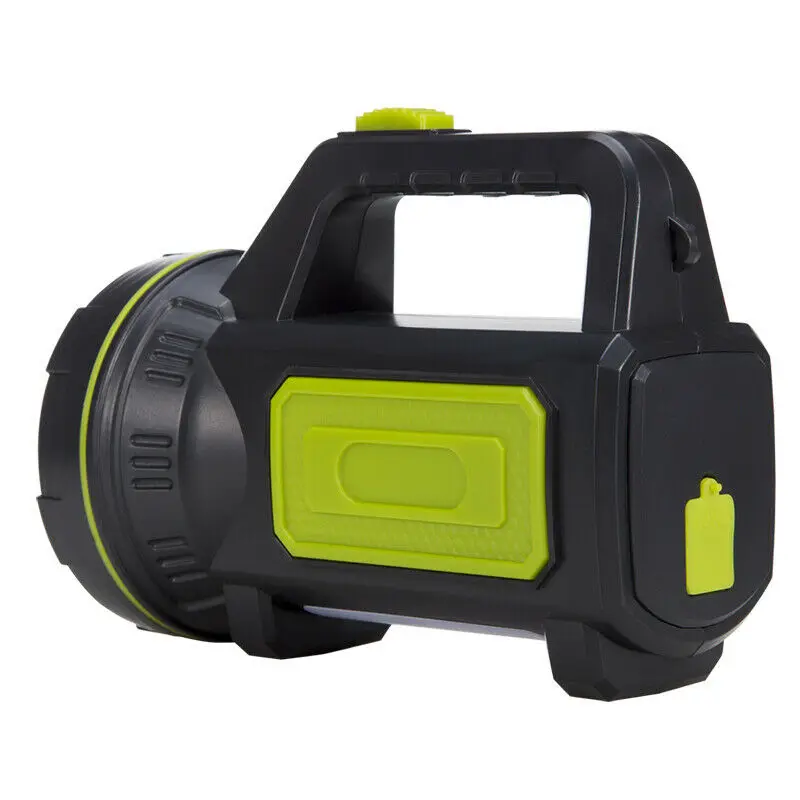 -Портативный Легкий ручной фонарь-прожектор, прожекторный светильник, многофункциональный и Водонепроницаемый IPX6, ручка для удобного использования и подвешивания. Фонарик с ручным прожектором также включает в себя наплечный ремень для удобной переноски и освобождения рук. Фонарик изготовлен из Высокоинтенсивного инженерного АБС-пластика, оснащенного полностью закрытой конструкцией, взрывозащищенным, пыленепроницаемым и ударопрочным. Водонепроницаемый IPX6 защищает его от брызг воды со всех углов.