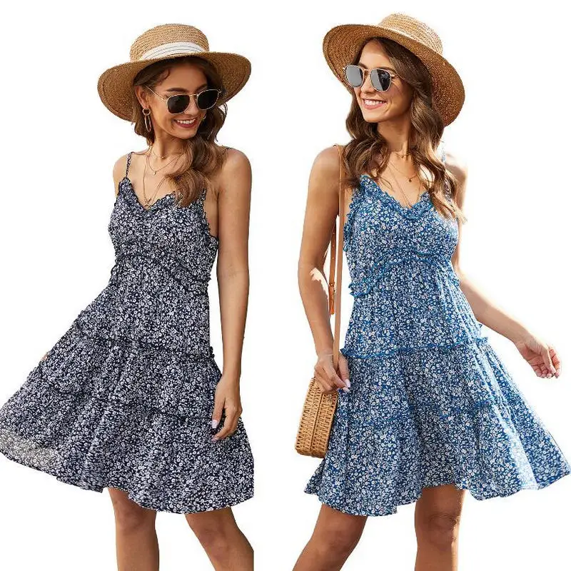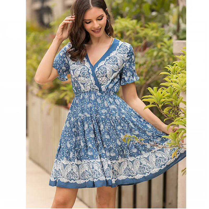 Женское повседневное летнее платье с v-образным вырезомUS $32,9