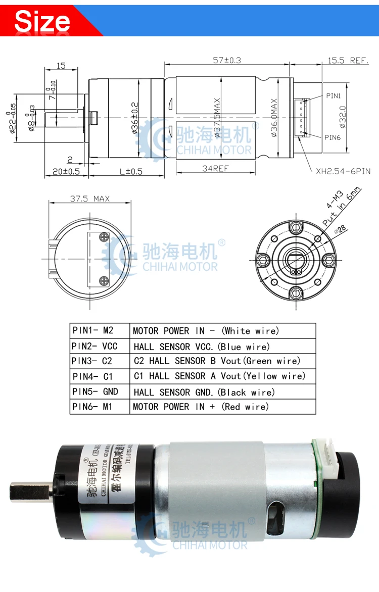 Размер: 36 *(70 мм + L) (за исключением вала и клеммы)