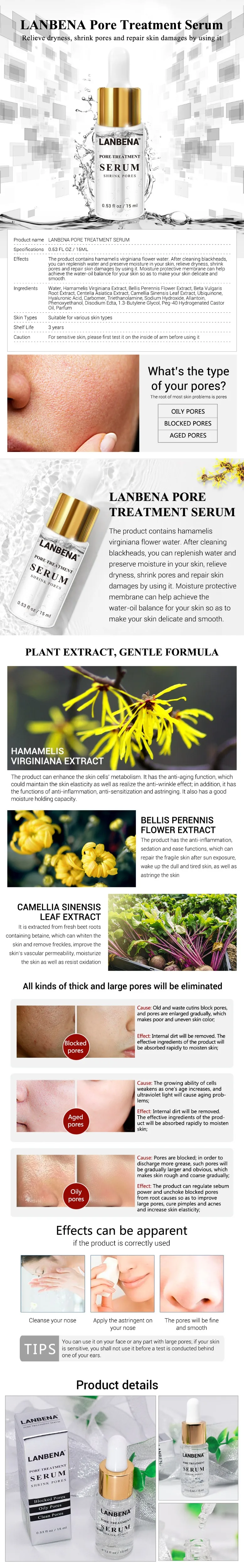 LANBENA Pore Treatment Serum Essence Shrink Pores Relieve Dryness Oil Control Firming Moisturizing Repairing Smooth Skin Care