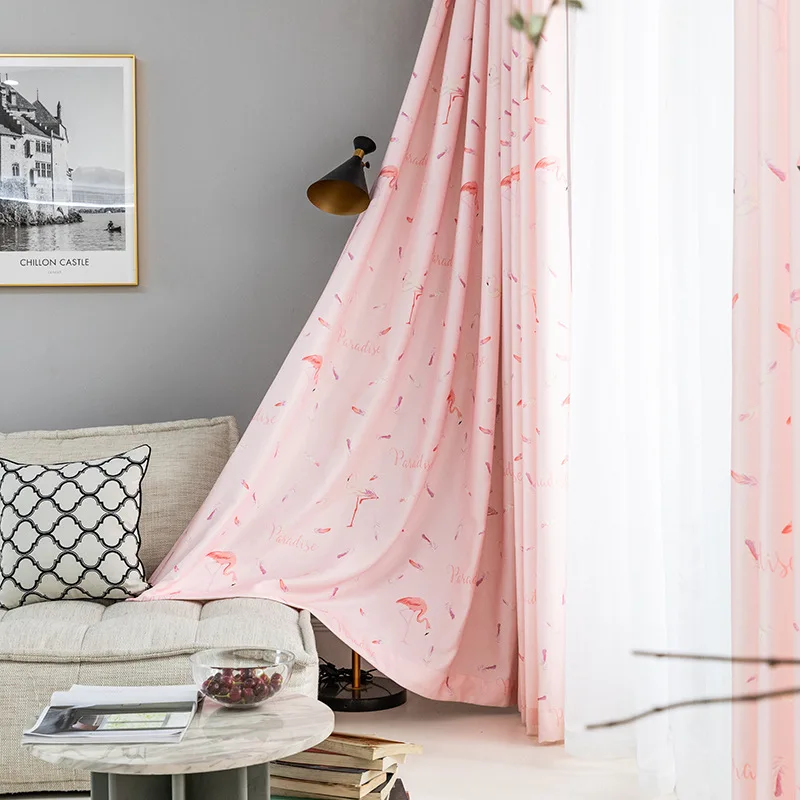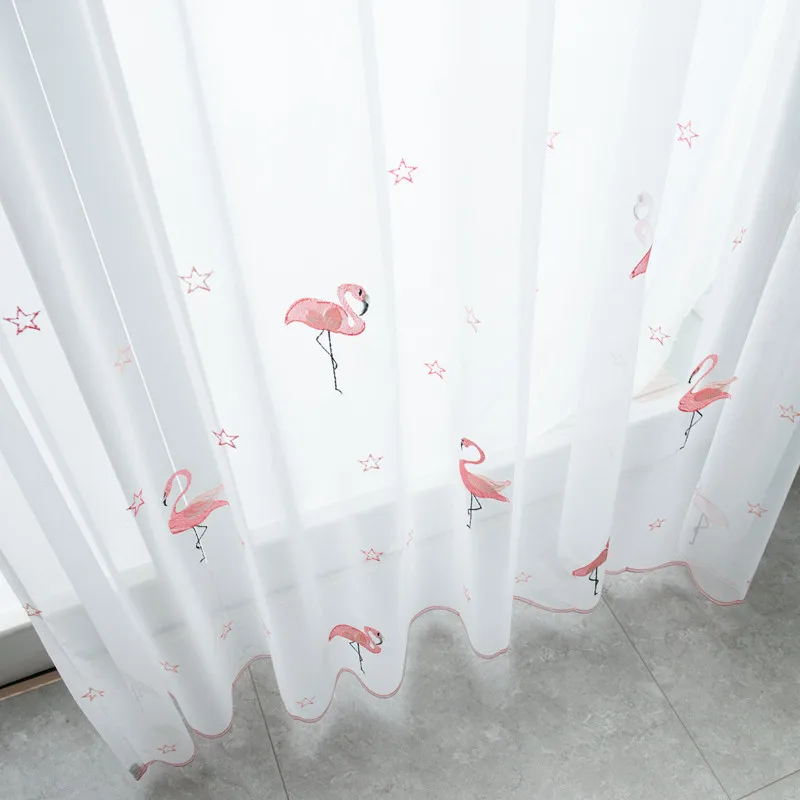 Милая Розовая Занавеска с фламинго для детской комнаты, спальни, полушатающаяся ткань, драпировка для гостиной, оконная вуаль, занавеска