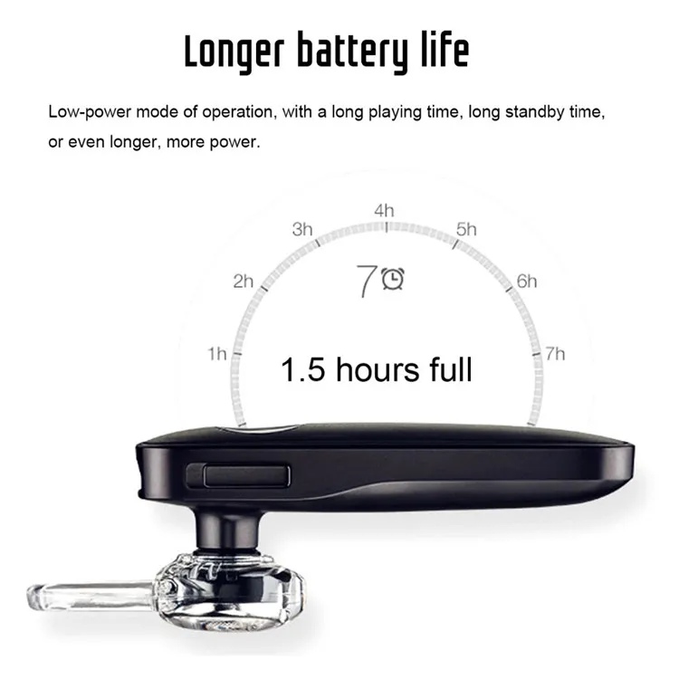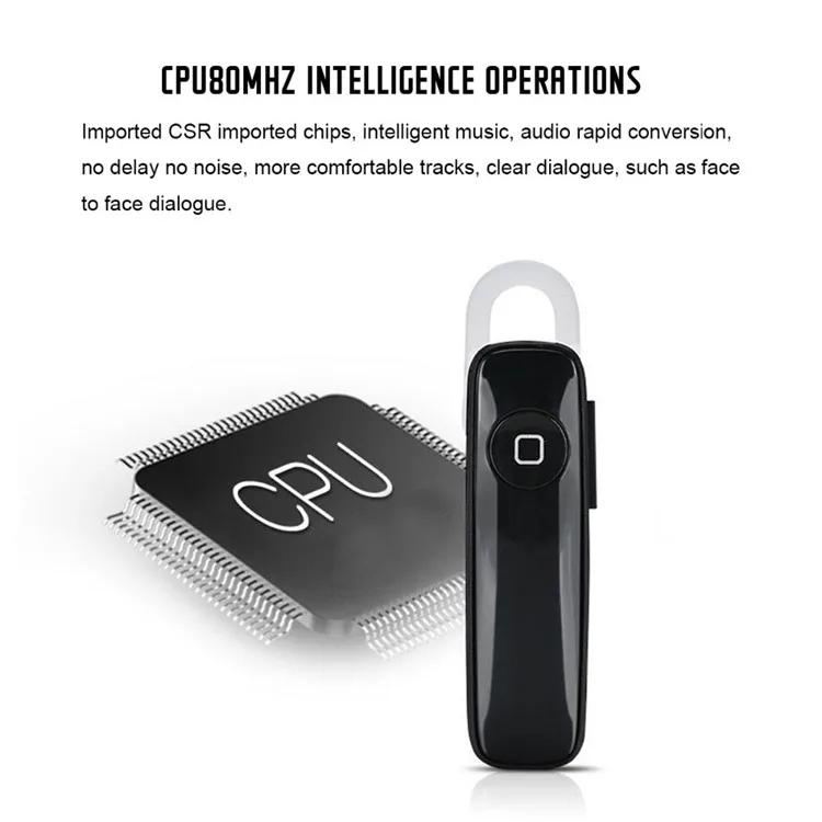 Параметры: Версия Bluetooth: V4.1 Время работы в режиме разговора: 4 часа Время воспроизведения музыки: 3 часа Время зарядки: 2 часа Время работы в режиме ожидания: 100 часов Рабочая температура: -40-80 градусов Емкость аккумулятора: 60 мАч Применимые продукты: мобильные телефоны, Ipad и другие планшетные компьютеры, ноутбук, Настольный ПК Диапазон доступности: 10 метров. Посылка список: 1 * Bluetooth наушники 1 * Вкладыши 1 * Ушные крючки 1 * USB кабель для зарядки 1 * Руководство пользователя