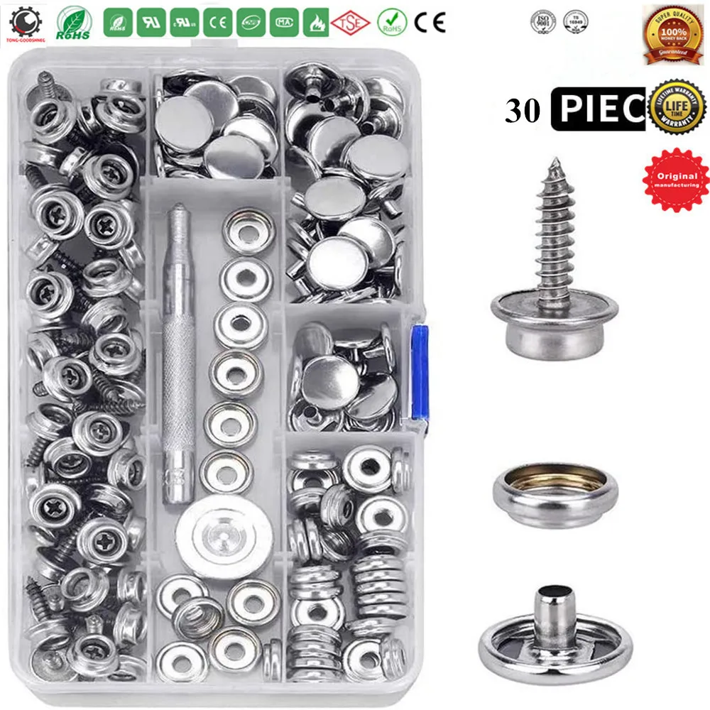 Морской кнопки комплект, Нержавеющая сталь защелки, крепления комплект, Heavy Duty лодка холст пуговицы застежка инструмент для ремонта мобильных телефонов для накрытия для лодки, кожа