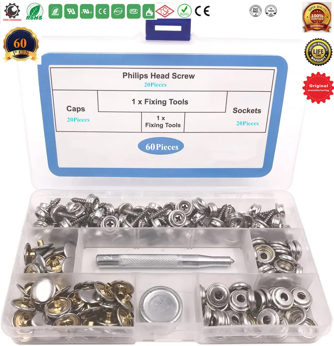 1. Посылка включает в себя: 10 шт. 3/8 "винт + 10 шт. 5/8" винт + 10 шт. 3/8 "гнездо + 10 шт. колпачок с 2 шт. инструмент для установки, хранящийся в прозрачной пластиковой коробке, удобно для хранения и использования. 2, высокое качество: наборы морских защелок изготовлены из нержавеющей стали, устойчивость к ржавчине в соленой воде, которая прослужит долго. 3. Широкое применение: брезентовые защелки широко используются для брезента, брезента, палаток, навесов, парусиновой ткани, мебели для газонов и т. д. 4. Характеристики: шпильки доступны для зажима на винт или холст шпильки для крепления на твердых поверхностях. Защелки с Сверхпрочной конструкцией обеспечивают надежное сцепление, которое будет оставаться безопасным в течение многих лет использования. ② TONG GOODSHNEG высокое качество морской класс холст и обивка лодка Крышка оснастки кнопка крепеж комплект, который может быть прикреплен к дереву, пластмассы и стекловолокна, они сильны и отлично подходят как для внутреннего, так и для наружного использования, С отличной устойчивостью к ржавчине в соленой воде. ☆ Особенности: Цвет: серебро Защелки: нержавеющая сталь Винт Размеры: 15x10 мм (0,59 ''x 0,39''), 15x15 мм (0,59 ''x 0,59'') Накладка на кнопку Диаметр: 15 мм/0,59'' ☆ Защелки изготовлены из нержавеющей стали 304 для дополнительной прочности Винты из нержавеющей стали с превосходной стойкостью к ржавчине и отличной стойкостью к окислению Шпильки доступны для зажима на винт или холст шпильки для крепления на твердых поверхностях ☆ Посылка детали: 10 шт х гнездо 10pcsx кепки 10 шт. x винт (10 мм) 10 шт. x винт (15 мм) 1 x наковальня 1 x инструмент расширения Коробка для хранения-1 шт.