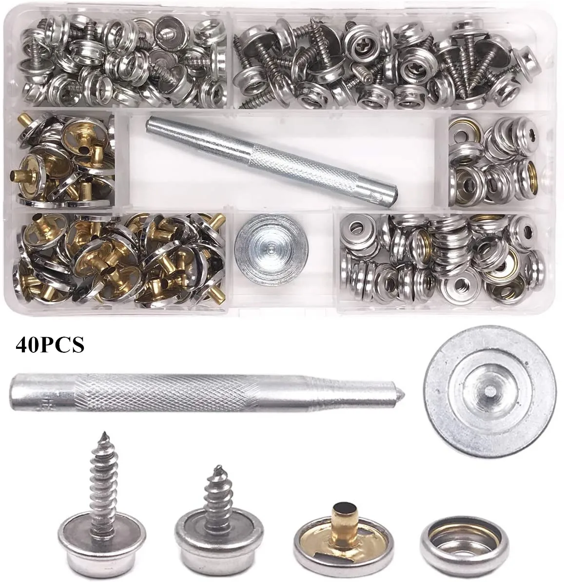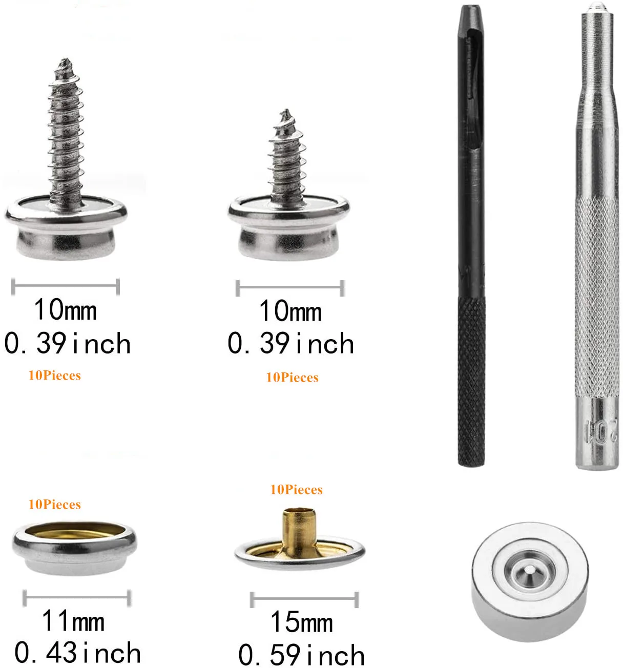 304 нержавеющая сталь морской класс холст защелки крепеж винтовые защелки, набор застежек для кнопок с 2 шт установочный инструмент, 10 комплектов-серебро
