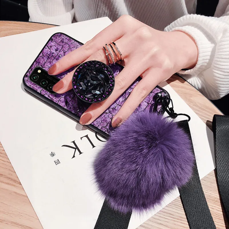 Чехол для Samsung Galaxy M31 с блестящей мраморной силиконовой подставкой, чехол для телефона Samsung M31, роскошная задняя крышка с помпоном для волос