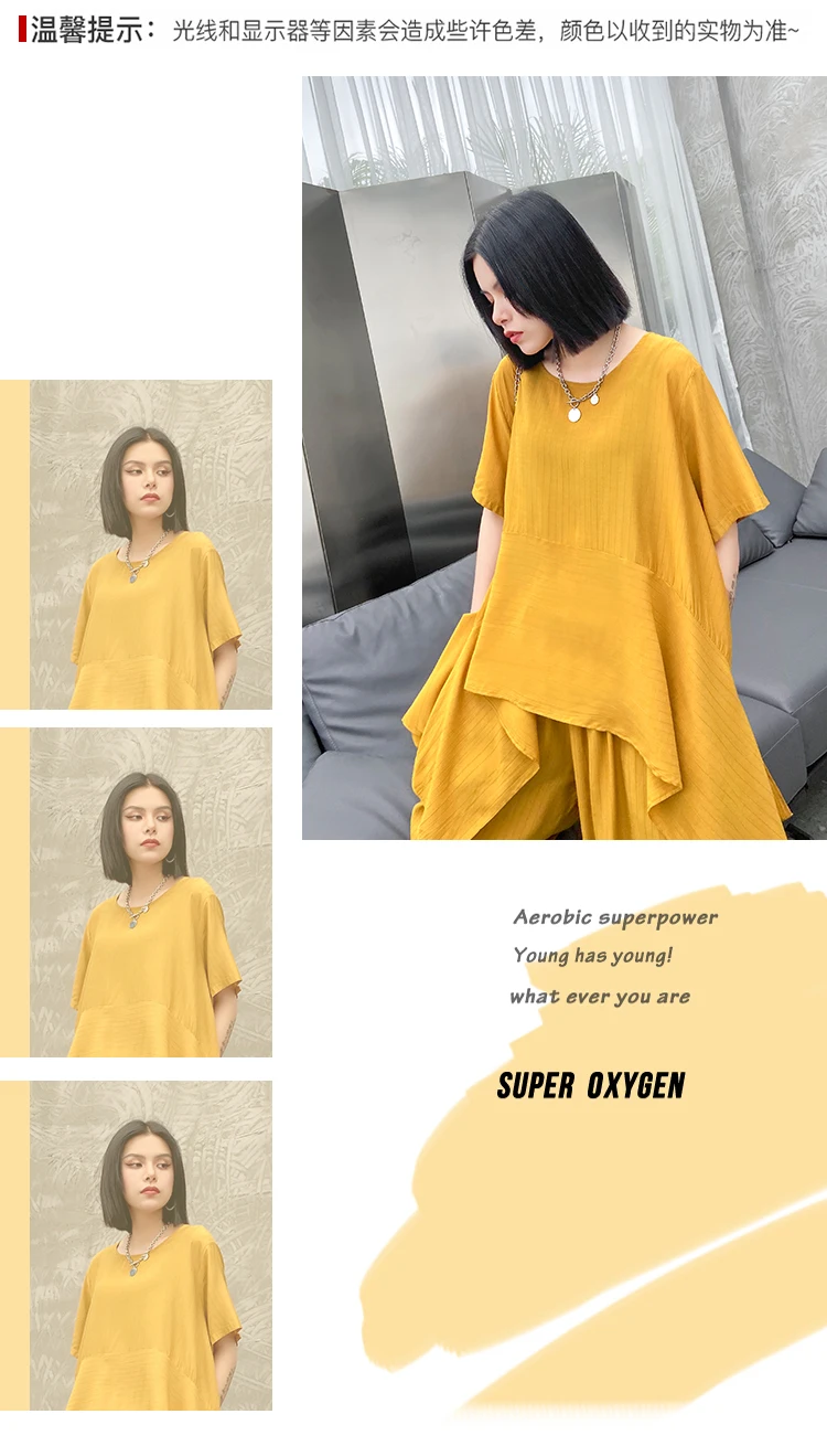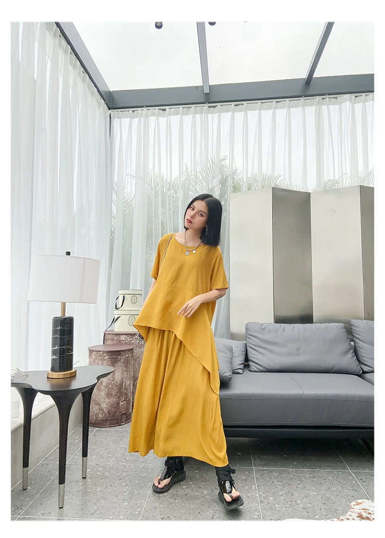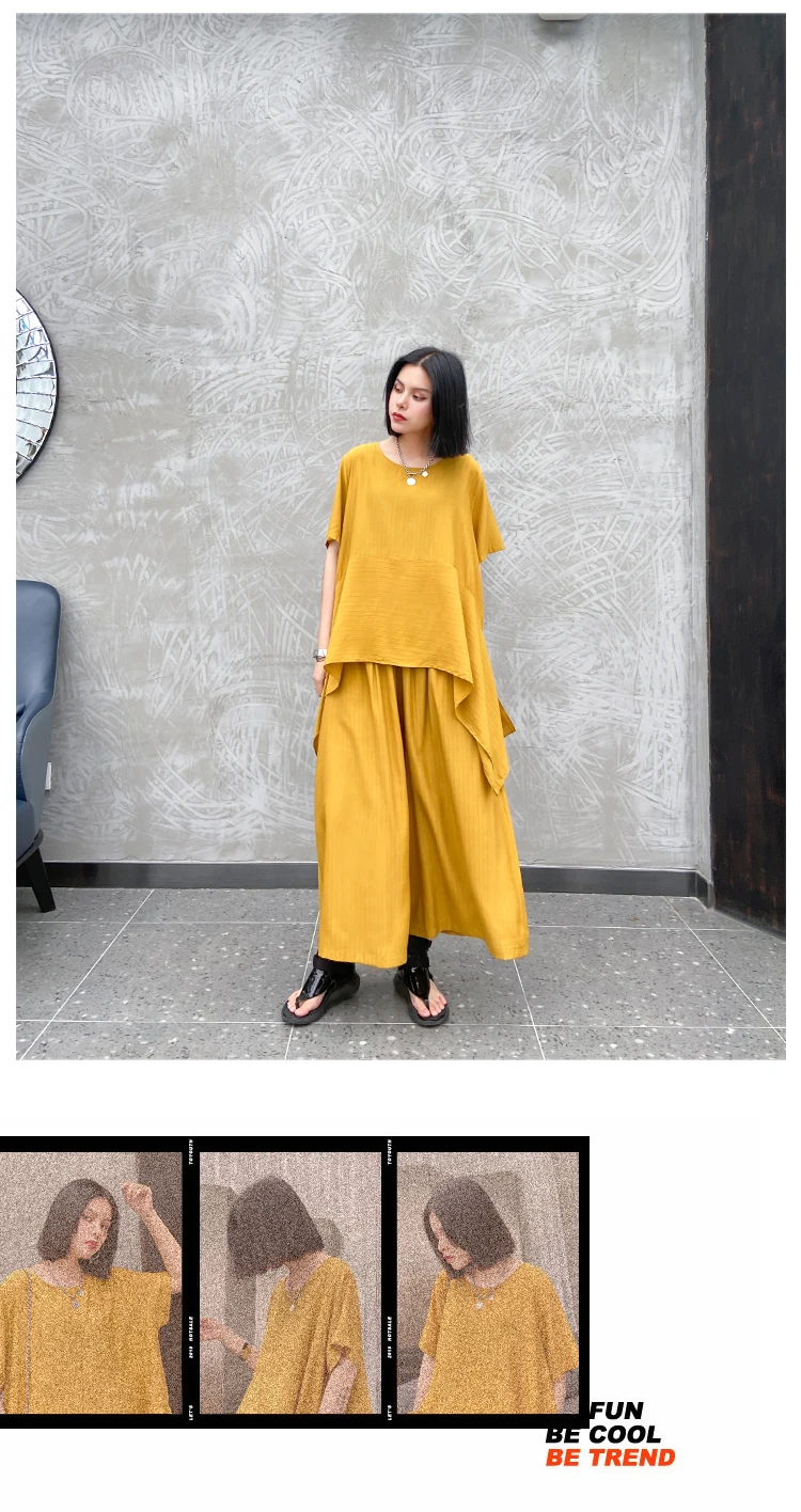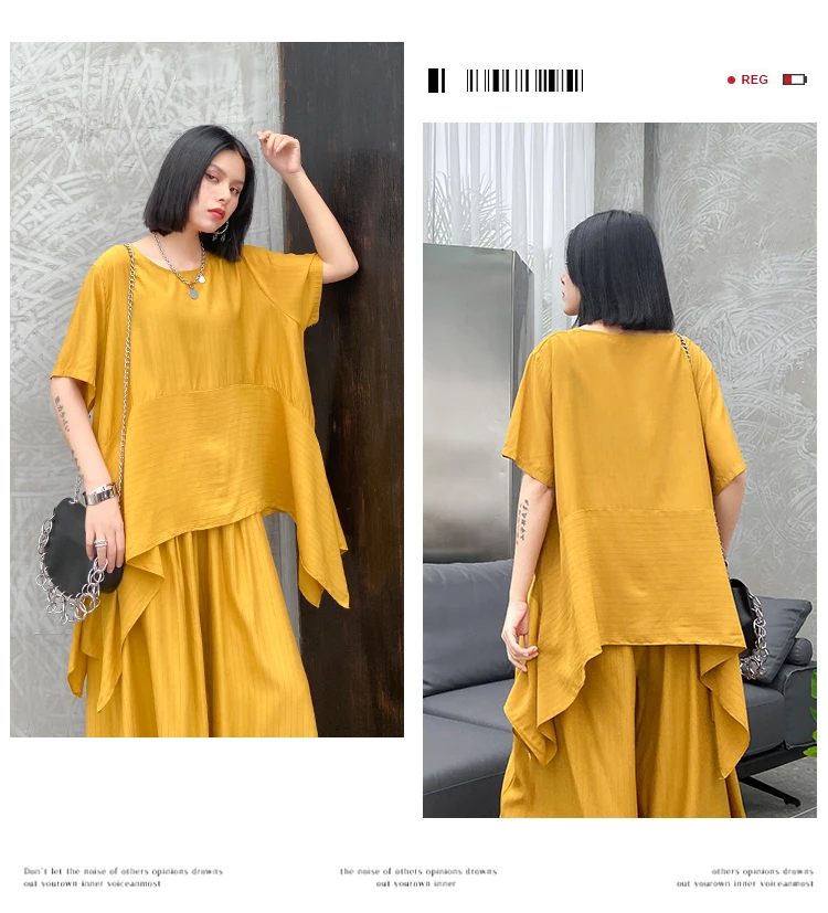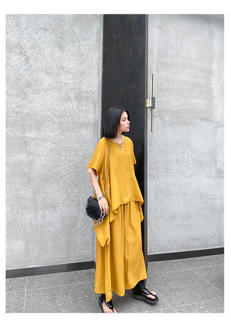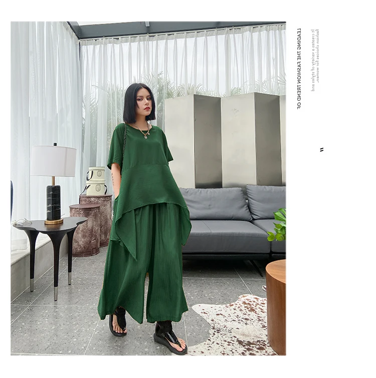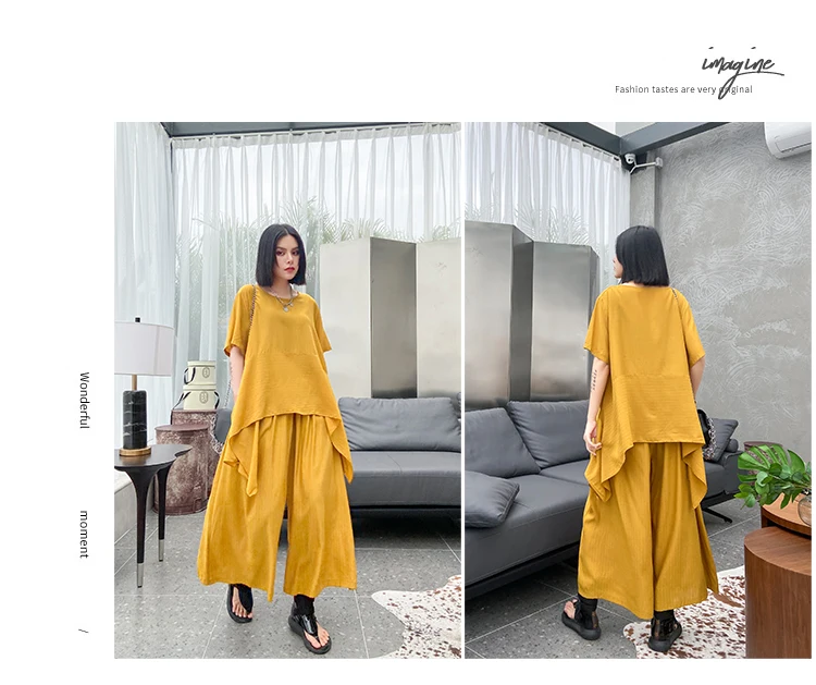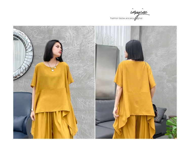 Однотонный Асимметричный топ + свободные широкие брюки; ZQY3934