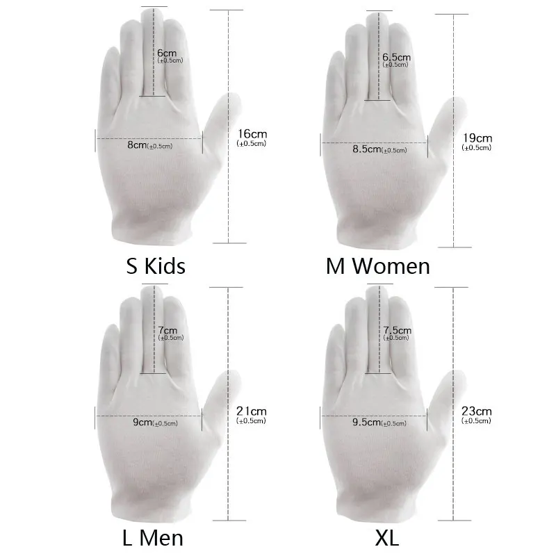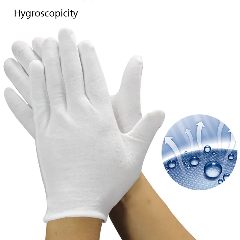 Белые хлопковые рабочие перчатки унисекс, белые хлопковые перчатки с защитой от пота, высококачественные перчатки для проверки качества, Новое поступление