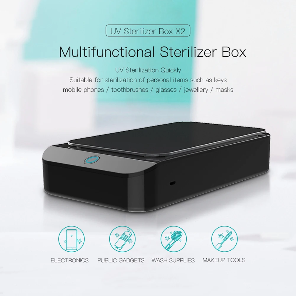 -Однокнопочная УФ-стерилизация, дезинфекция необходимых предметов: ювелирные изделия, ключи от автомобиля, маски и другие предметы, электронные предметы, такие как мобильные телефоны, мыши, пульты дистанционного управления, зубные щетки, косметические кисти и другие личные туалетные принадлежности.