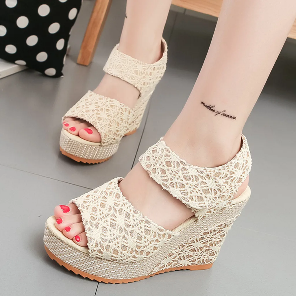 Women's Ladies Platform Wedges Heel Sandals Floral Flower Lace-up Shoes Footwear