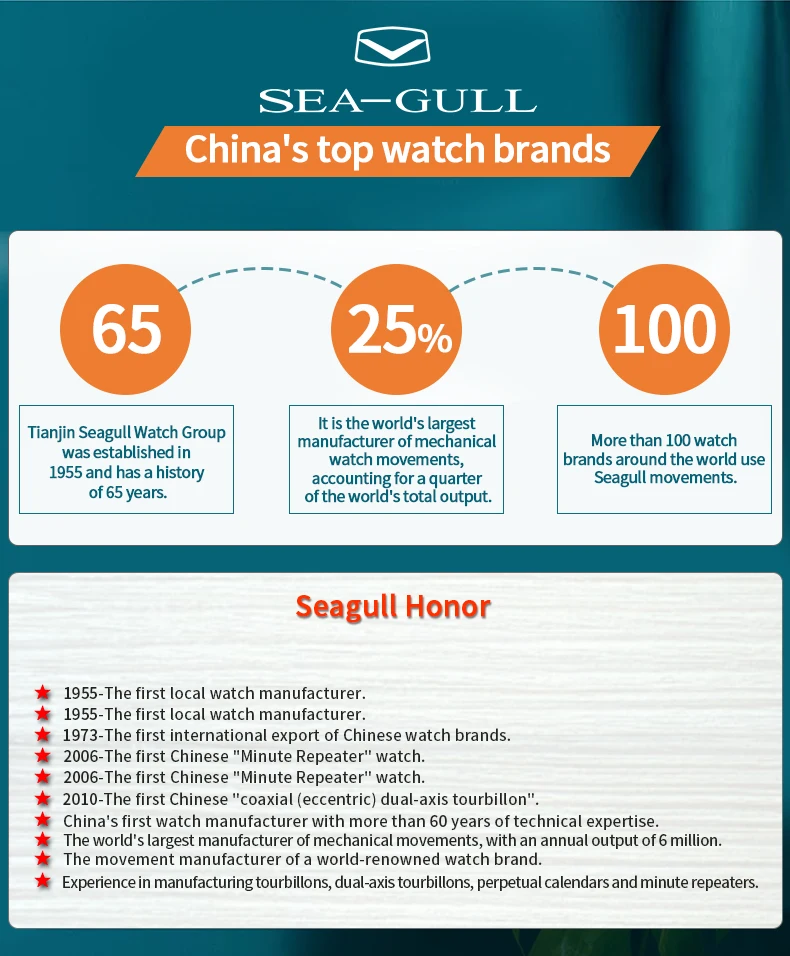 ★1955-первый местный производитель часов. ★1966-первые самостоятельные часы в Китае. ★1973-Первый Международный Экспорт китайских брендов часов. ★2006-первые китайские часы «минутный ретранслятор». ★2010-Первый китайский "коаксиальный (эксцентричный) двухосный турбийон". ★Китай первая часы с более чем 60 лет технического опыта. ★Крупнейший в мире производитель механических движений, годовой объем производства составляет 6 миллионов. ★Производитель часов всемирно известного бренда. ★Опыт в производстве турбийонов, двухосевых турбийонов, вечных календарей и минутных Ретрансляторов.