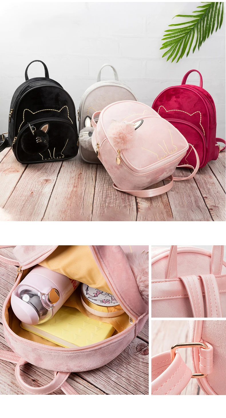 1. Внутренний карман на подкладке из полиэфирной ткани, гладкий и мягкий, легко моется 2. Мягкий и портативный Плечевые ремни изготовлены из мягкой кожи, а не из рук и плеч 3. Милый дизайн кошки 4 волос подвеска в форме шара