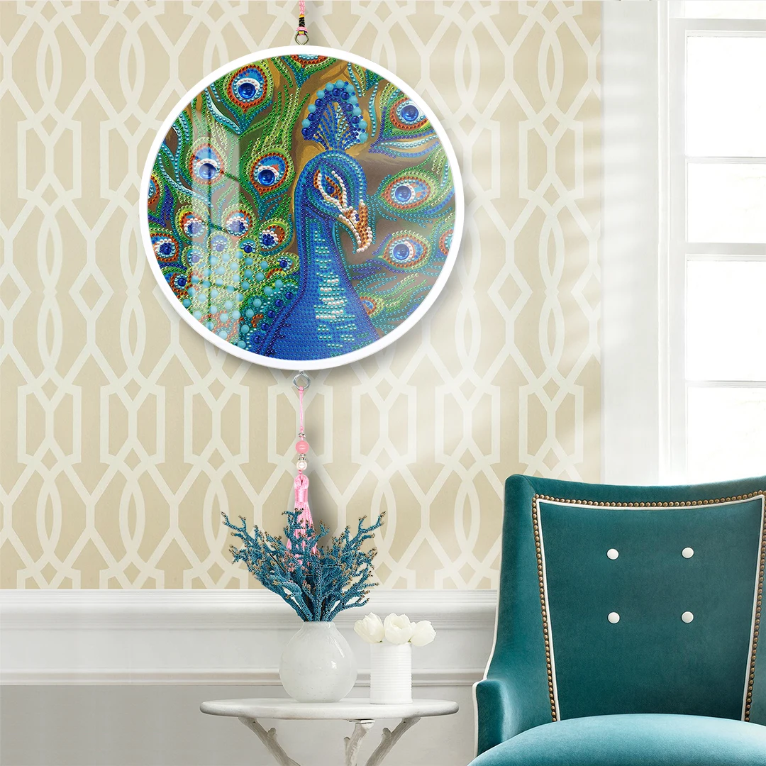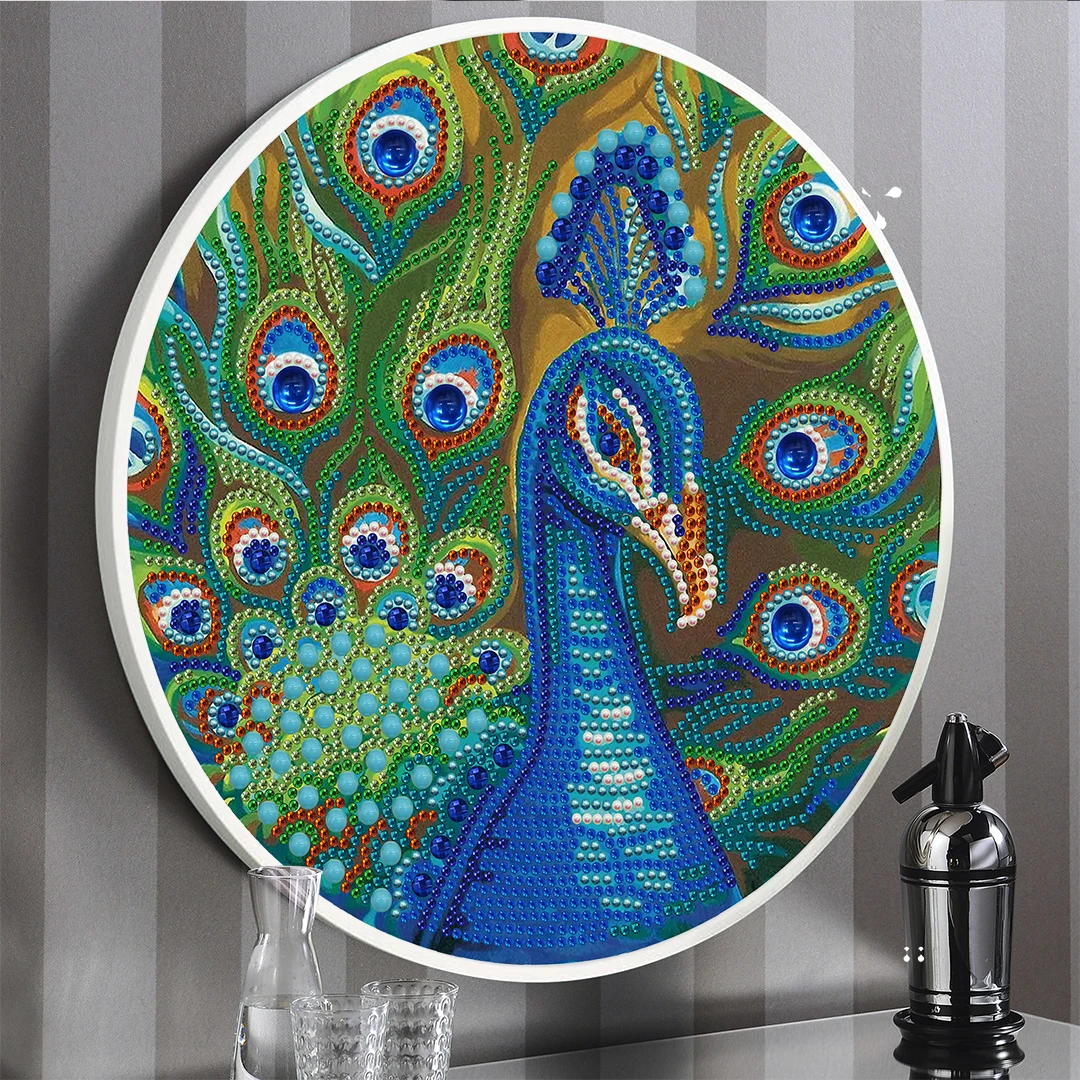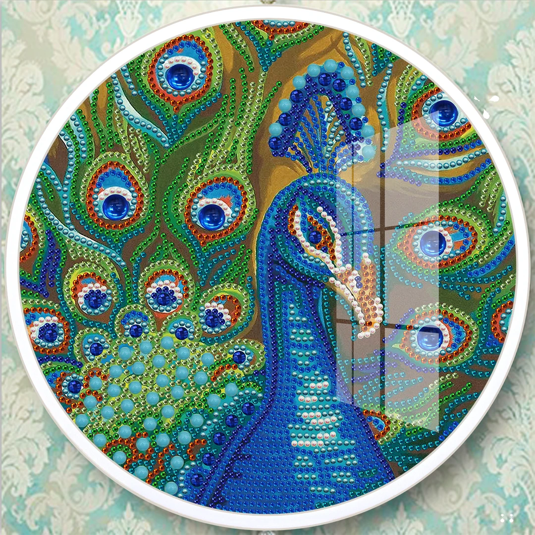 Алмазная картина сделай сам в круглой раме 5d с кисточками форме павлина наборы