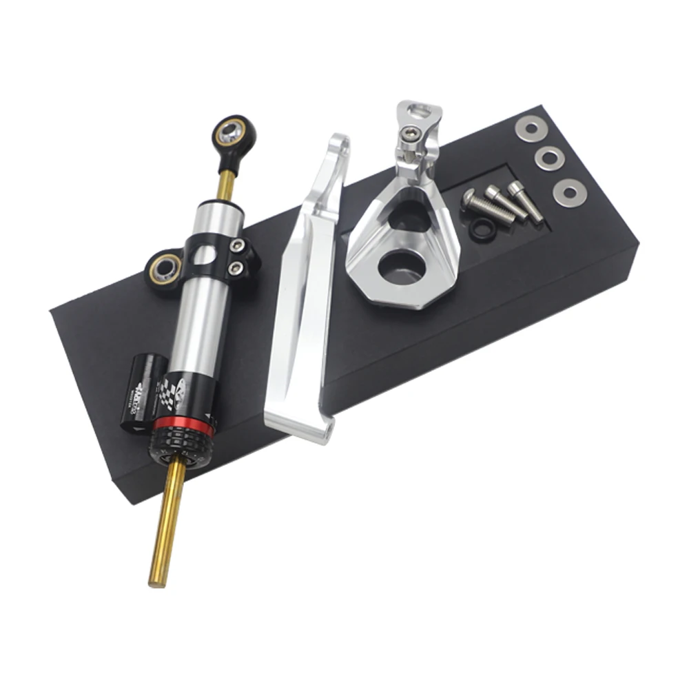 Комплект для установки амортизатора рулевого управления автомобильного мотоцикла. Установочный Комплект помогает повернуть амортизатор, чтобы минимизировать этот риск. Амортизатор предотвращает дребезжание и вибрацию топливного бака. Таким образом, вы будете иметь велосипед, которым можно манипулировать обычным способом и реагировать так, как вы хотите в неожиданных ситуациях. Описание товараСтатус:100% Новый бренд Материал:ЧПУ алюминий Цвет:Черный/серебристый (как показано) Особенности:1. Монтажный кронштейн обработан авиационным алюминиевым ЧПУ2 светильник, но высокопрочный и долговечный3. Анодированная обработка поверхности4. Прикрепленные болты для легкой установки5. Простота установки, инструкции по установке не требуются6. Кронштейн можно использовать со всеми амортизаторами рулевого управления Hyperpro. Посылка1 комплект Рулевого управления кронштейн для амортизатора Украшение:Подходит для Honda CBR600RR 2005-2006 Меры предосторожности при установке:1. После установки Поверните голову вправо и влево, чтобы проверить, достаточно ли места для поддержки амортизатора рулевого управления.2. Проверьте, подходит ли амортизатор рулевого управления и его комплект к мотоциклу или топливному баку. Если это сделано или помещение недостаточно, переместите рулевой демпфер Горизонтально в соответствующее положение.