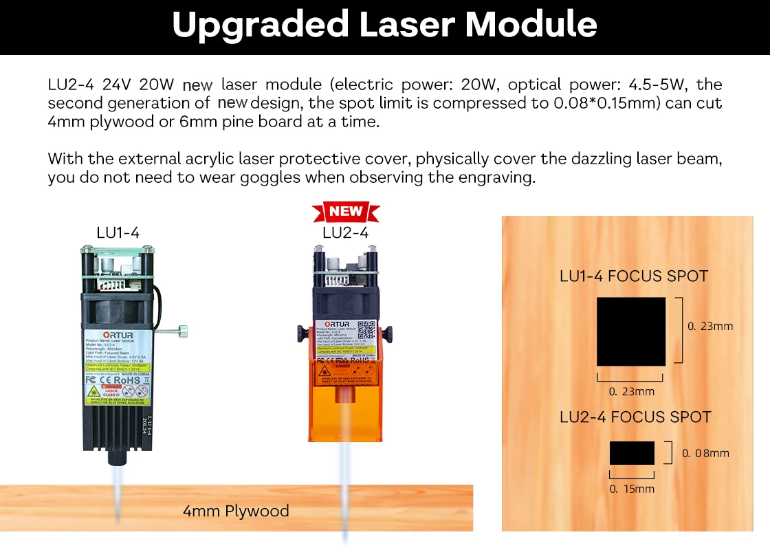 LU1-4 лазерный модуль с фиксированным фокусом 20 Вт