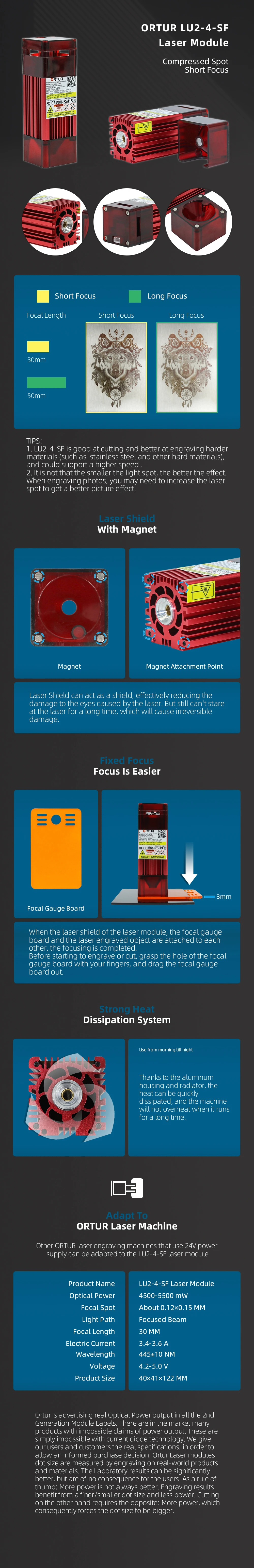● Лучшее Фокусное расстояние: 20 - 30 мм от выхода на светильник