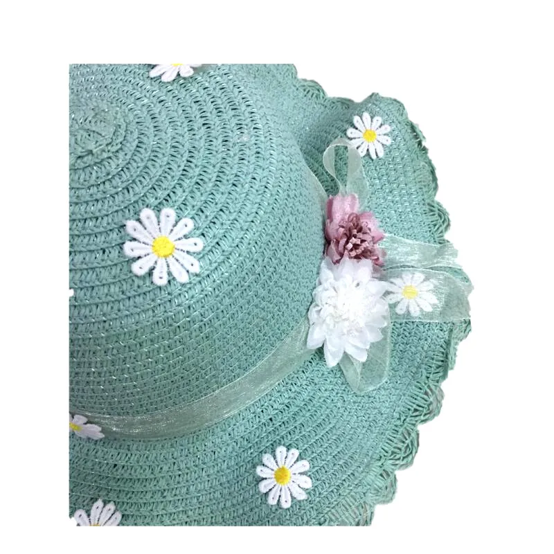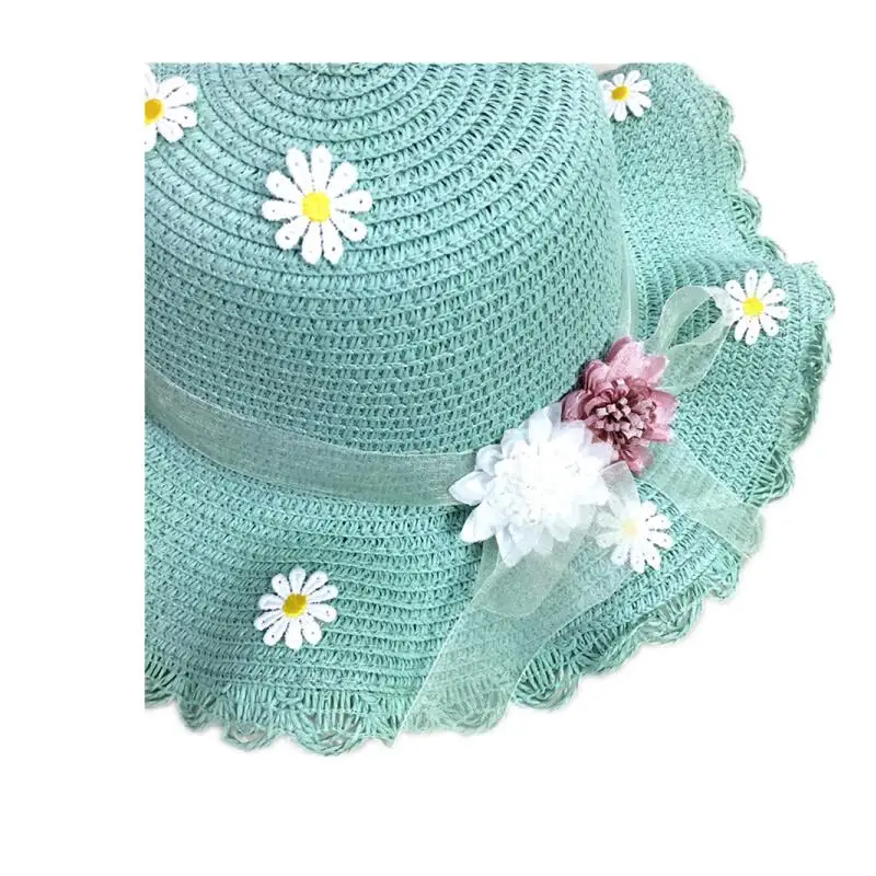 One size 52cm with adjustable sweatband for kids from 4-8 years old. The hat is also with the matching straw handbag.