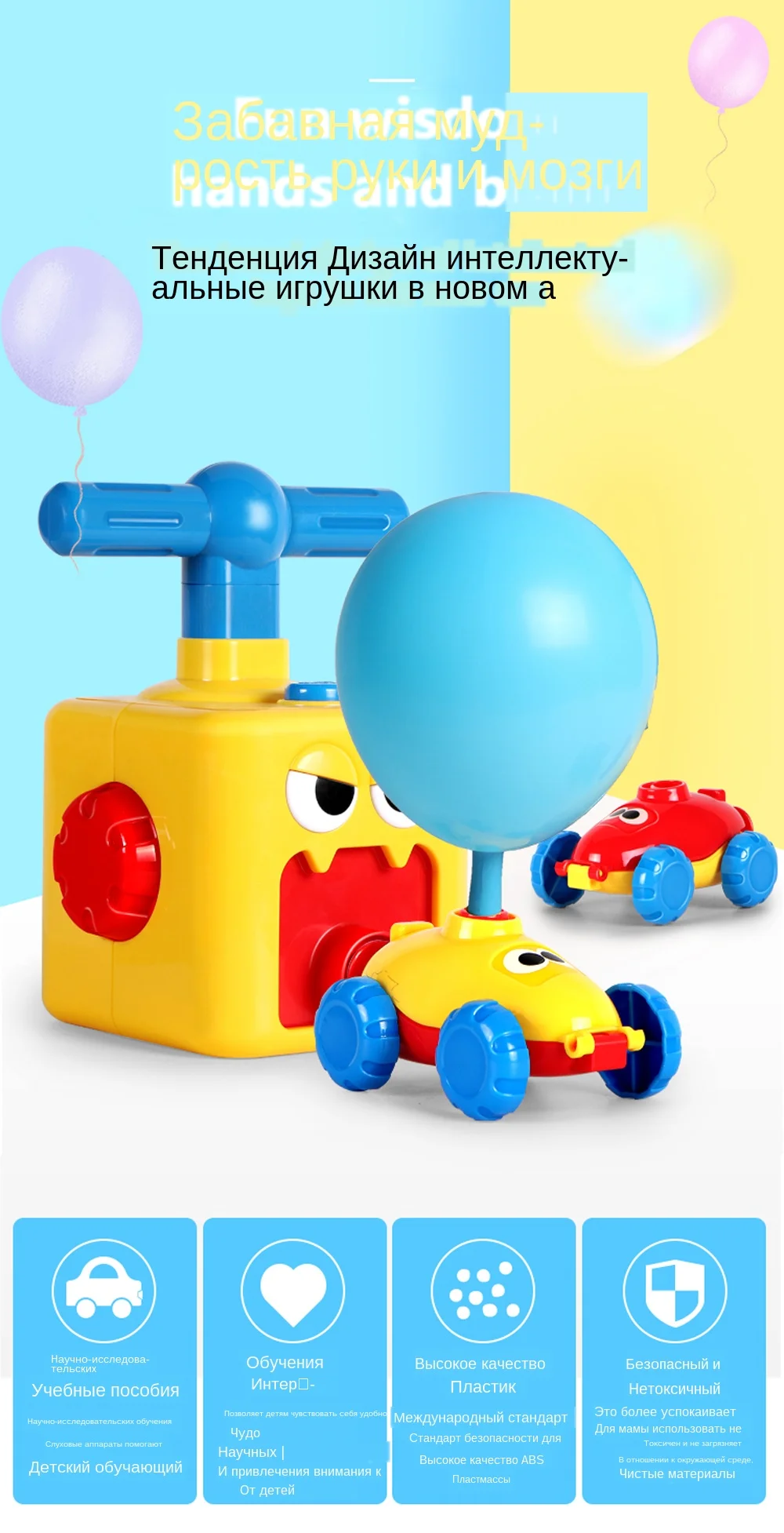 Посылка включает в себя: 1 * надувная трубка 2 * автомобиль 6 * воздушный шар Прекрасная игрушка: игрушка-отличная игрушка DIY, поэтому дети могут узнать некоторые науки и физику. Премиум Качество: Автомобильная игрушка предоставляет вам, детям, новые высококачественные воздушные шары для гонок. Премиум Материал: игрушка имеет высококачественный материал, чтобы не навредить вашему ребенку. Практичный в использовании: Откройте крышу автомобиля и установите его с помощью воздушного шара. Выровняйте Надувной Держатель и установите автомобиль. Нажмите надувную удочку вниз, чтобы заполнить воздушный шар. Нажмите кнопку «Пуск», чтобы сделать машину движущейся. Практичный дизайн: игрушка может улучшить атлетические способности вашего ребенка. И Набор игрушечных моделей DIY должен быть установлен перед игрой. Точка пули: экологически чистые материалы нетоксичные и безвкусные, и основной корпус принимает экологически чистый АБС-пластик, чтобы играть ребенка с уверенностью. Конструкция компактная, противоскользящая и износостойкая, а конструкция изделия компактна и надежна. Игрушки, которые можно играть во время игры, используют аэродинамические принципы для движения автомобиля вперед. Используйте аэродинамику для защиты окружающей среды и экономии энергии без использования аккумулятора. Идеальный подарок для ваших детей. Описание: Материал: ABS наращивание потенциала: интеллектуальное развитие возраст применения: 3 Примечание: Из-за различных эффектов монитора и светильник фактический цвет может значительно отличаться от цвета на изображении.