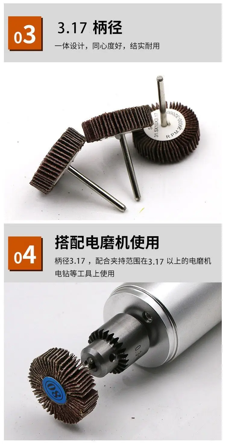 Тип: Шлифовальная головка жалюзи с ручкойМатериал: шлифовальная бумагаВнешний диаметр: 31 ммПрименяется для: полировкиТолщина: 10 ммВес: 9 гОбласть применения: подходит для грубого шлифования, шлифования, полировки и широкого применения различных металлов и неметаллов. Его можно использовать в электрической дрели, подвесном шлифовании, ветрошлифовке, электрической шлифовке и других шлифовальных и полировочных работах.Изображение продукта