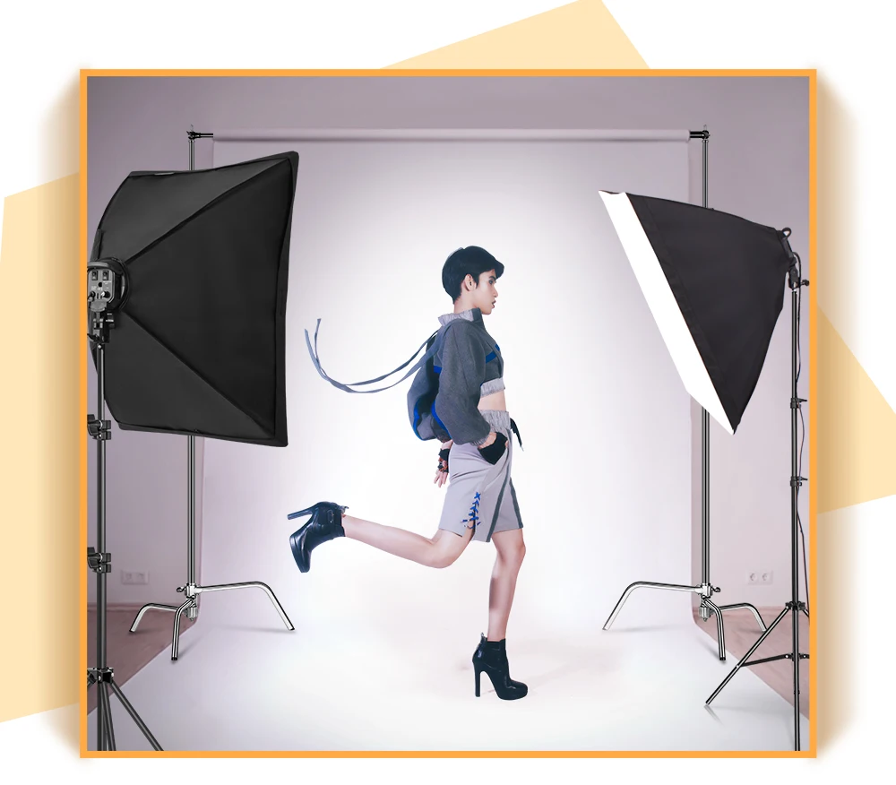 Это идеальный комплект освещения софтбокса для фото-студии видео. Четыре держателя лампы: подходит для 4 ламп, Цоколь E27 подходит для большинства осветительных приборов. Четыре вида адаптера питания: штепсельная вилка европейского стандарта, штепсельная вилка американского стандарта, штепсельная вилка британского стандарта, штепсельная вилка австралийского стандарта. Софтбокс 50x70: белая Складная мягкая ткань, высококачественные светоотражающие частицы. Безопасное и нетоксичное полиэфирное волокно, 4 гибких шатуна. Осветительная стойка: сложенная высота 27 дюймов (68 см), рабочая высота 79 дюймов (200 см) высокое качество, стабильная и прочная, простая установка и использование. Подарите 2 дополнительных предохранителя в подарок (чтобы предохранитель не горел из-за чрезмерного рабочего времени) Светодиодные лампы: профессиональная лампа для фотосъемки, супер мощность и высокая яркость, обеспечивают яркую среду для фотосъемки изделия. Цоколь E27 подходит для большинства стандартных фотокреплений. Срок службы до 8000 часов, экономия энергии до 80%, низкая рабочая температура, отсутствие шума и мерцания, идеально подходит для цифровой фотосъемки.