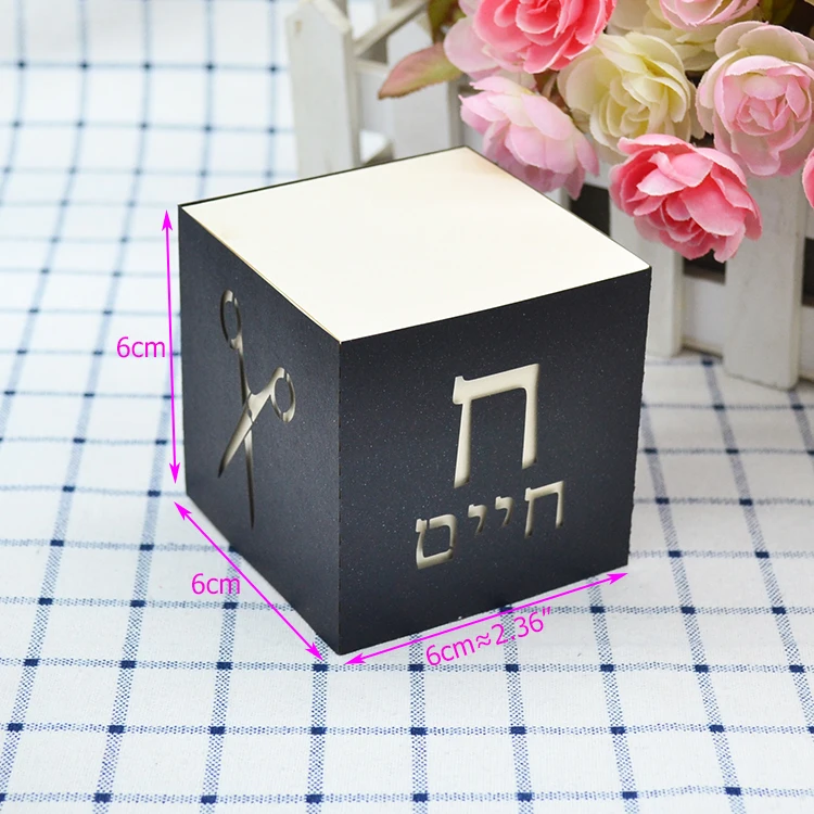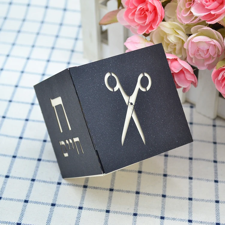 Иудейский стиль лазерная резка на заказ иврит имя upsherin ножницы Подарочная коробка для 3-го года День рождения украшения