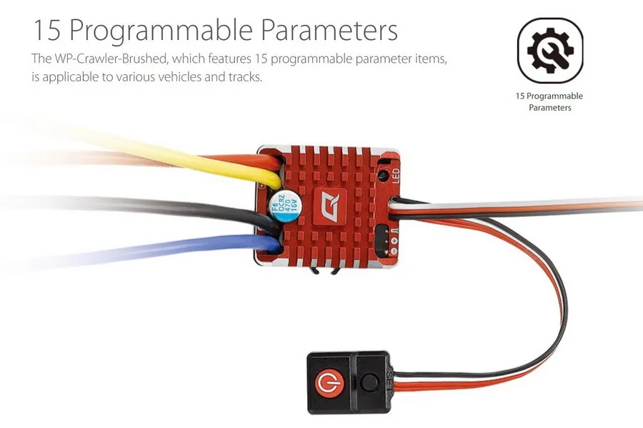 • Отдельный порт программирования для легкого подключения светодиодный карты программы к ESC. • Однокнопочный ESC программирование и заводской сброс.