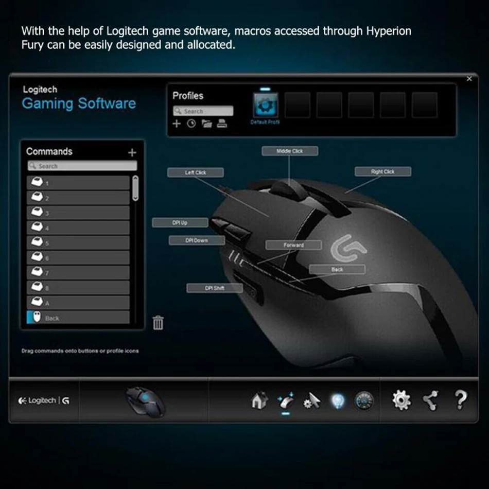 Усовершенствованная сенсорная технология для сверхбыстрой игры. Hyperion Fury сочетает в себе оптический датчик с технологией Zero Delta Logitech с нашим эксклюзивным гибридным датчиком fusion engine, который обеспечивает скорость отслеживания более 500 IPS. Более умный, чем когда-либо. Процессор Arm Integrated Hyperion Fury позволяет двигателю fusion достигать невероятной скорости, в то же время покидая любимый магазин и используя макросы. С помощью игрового программного обеспечения Logitech можно создавать и назначать макросы, к которым можно легко получить доступ из Hyperion Fury. Настройте его в соответствии с вашим стилем игры. Настройте мышь с помощью 8 программируемых кнопок. Если вы хотите бросать гранату, как будто вам нужно получить доступ к инвентарю, у вас есть все под рукой. Программное обеспечение Logitech Gaming является необязательным и облегчает конфигурацию