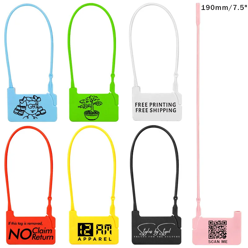 190 мм/7,5 "изготовленный на заказ ярлык бренда одежды одноразовые пластиковые Персонализированные Бирки безопасности одежды ярлык для одежды обувь 100 шт