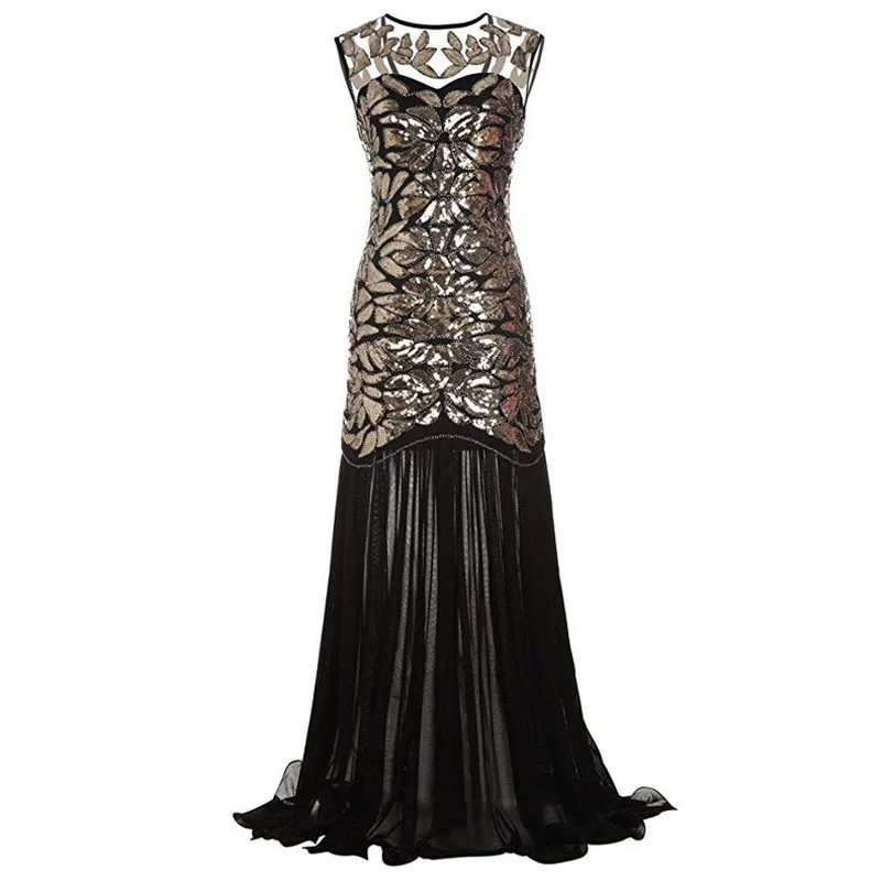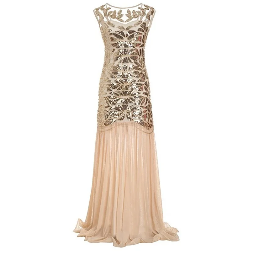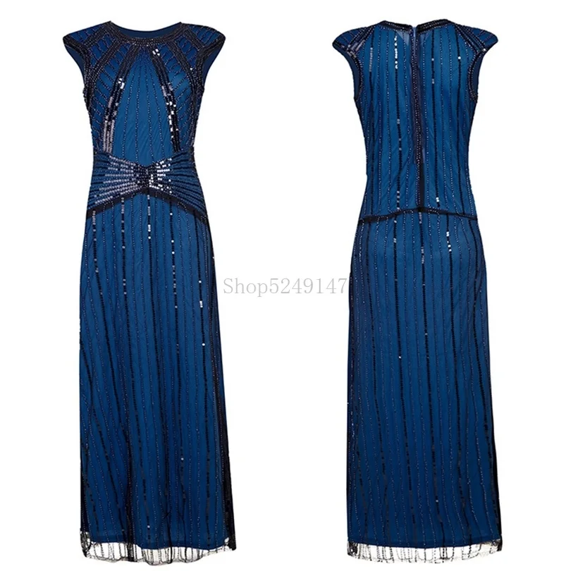 Женское прозрачное длинное платье без рукавов с v-образным вырезом сзади, винтажное платье макси с блестками и бусинами, модель 1920s Great Gatsby, вечерние платья с оборкамиUS $29,80 /