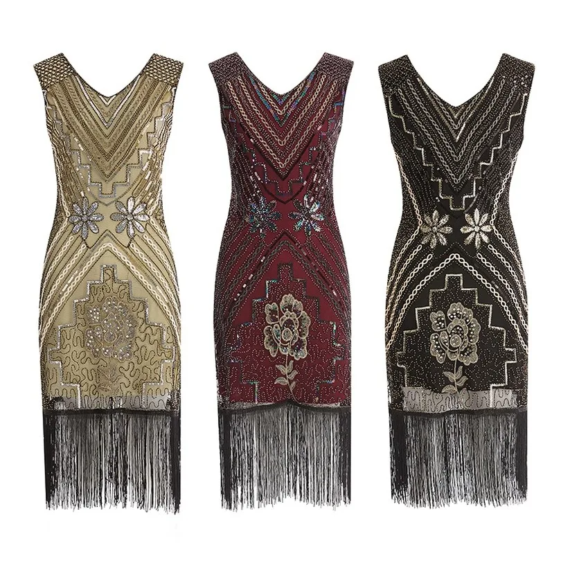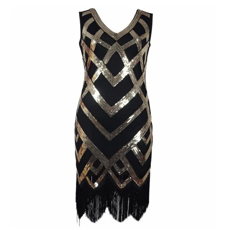 S M L XL XXL XXXL Винтаж 1920s Гэтсби блесток с бахромой в стиле пэчворк Пейсли платье-Чарльстон для женщин; Большие размеры вечерние платья