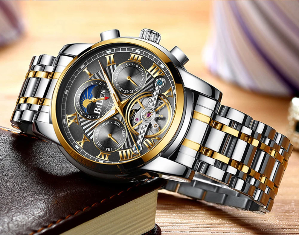 Модные Повседневные хрустальные 44 мм Купольные стеклянные часы с кожаным
