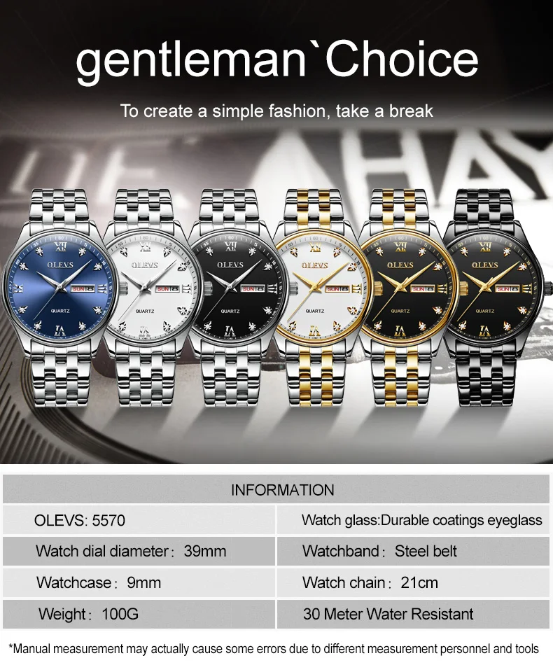 -Olevs всегда придерживалась концепции обслуживания, удовлетворяя потребности клиентов и ориентируясь на интересы клиентов; -Olevs имеет зрелый производственный процесс. -Диверсификация функций часов, ударопрочный/водонепроницаемый увеличивает срок службы часов, прочный/Модный/роскошный. -Все Продукты отправляются после тестирования и дезинфекции, пожалуйста, не стесняйтесь покупать.