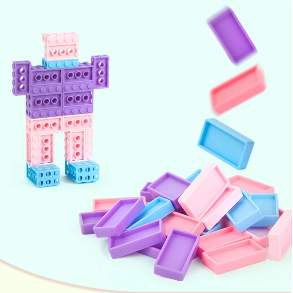 – These plastic blocks domino pieces are finished with non-toxic paints which are safe and won’t fade. The dominos are made of plastic, smooth edges to ensure children's safety during play.