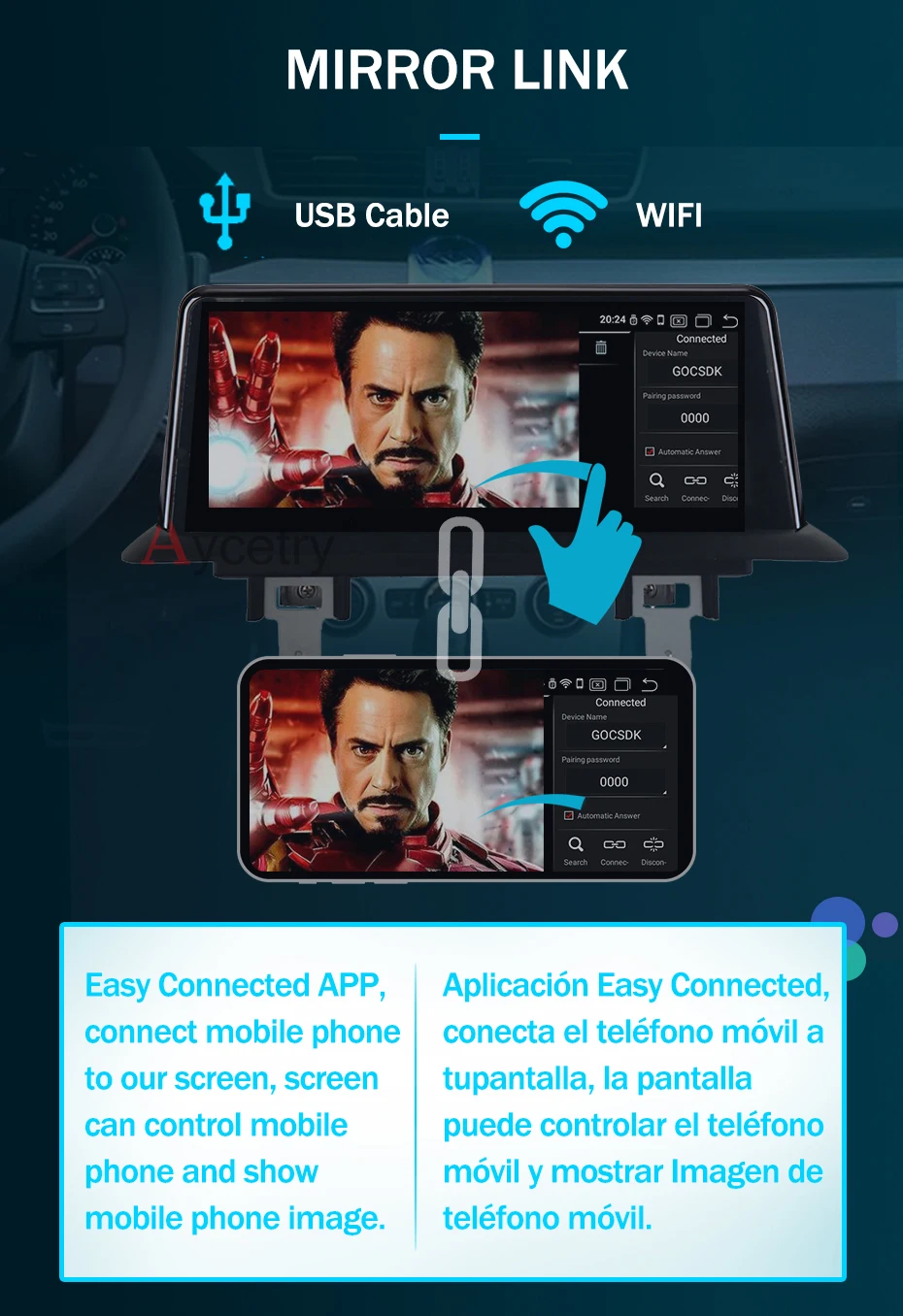Подключите ваш мобильный телефон к этому радио с помощью функции зеркальной связи, радиоэкран покажет мобильный телефон, как зеркало. И радио может управлять ваш мобильный телефон, так что вы можете слушать мобильный телефон музыку или совершать звонки через Радио экран после их подключения.