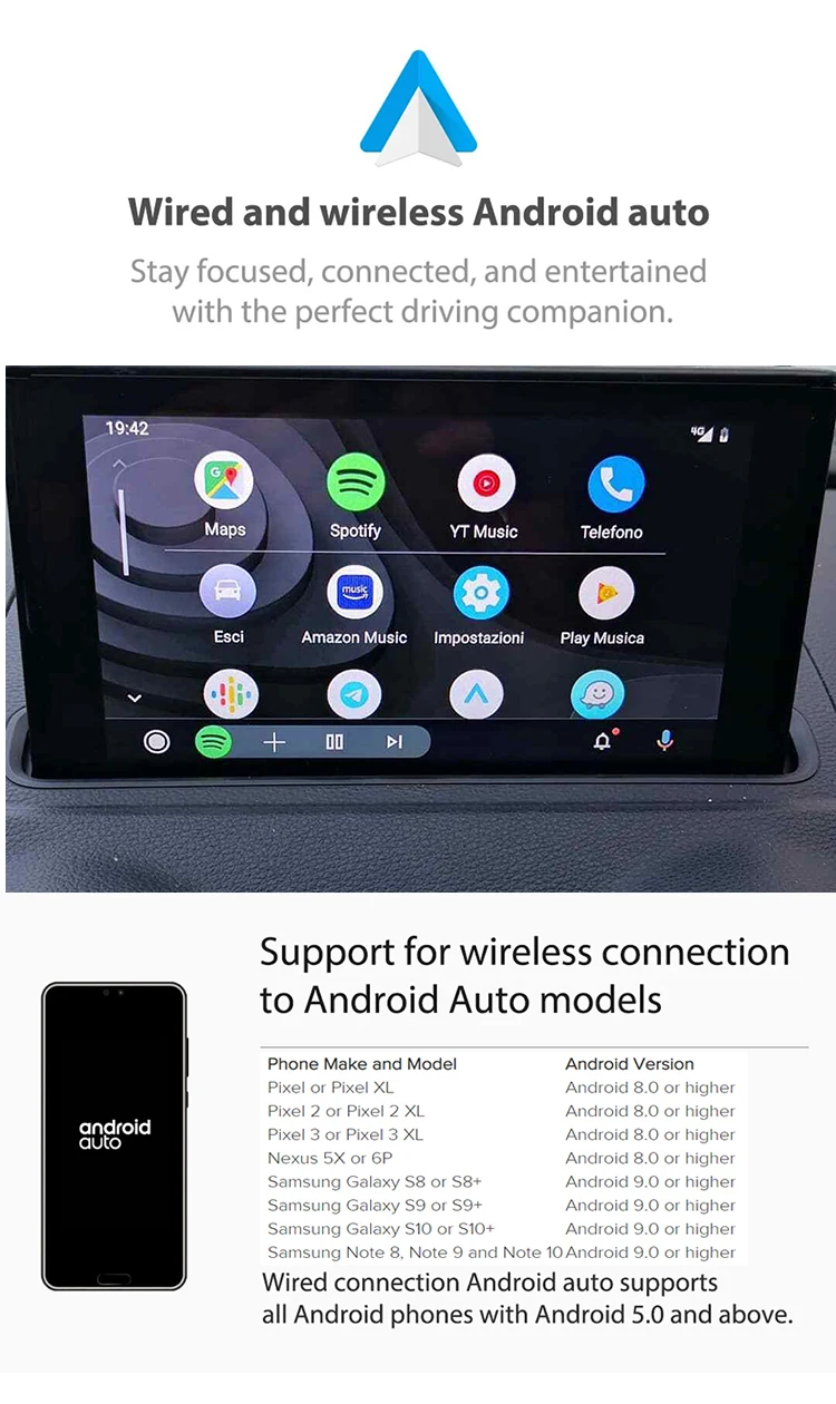 Keep the original car function remain, without changing the screen or breaking the wires.Don't change your ways, use your preferred applications on your original screen with Carplay and Android Auto etc